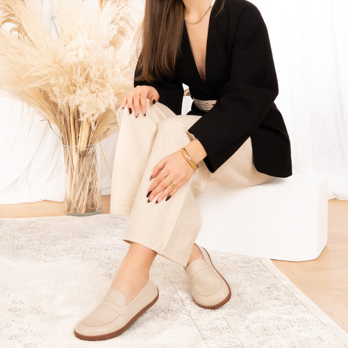 Skórzane mokasyny damskie barefoot Sorrena beżowe