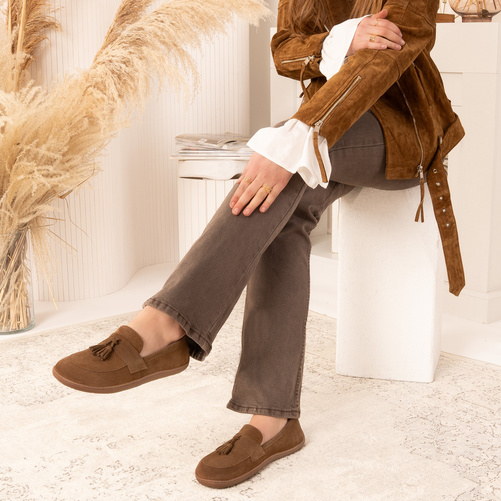Zamszowe mokasyny damskie barefoot Zahra brązowe