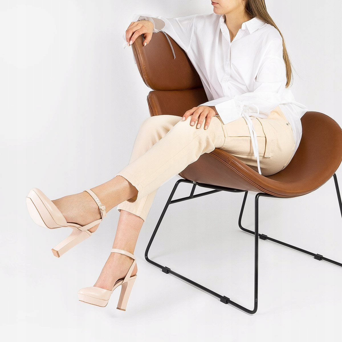 Opinie o Licowe czółenka na platformie z odkrytą piętą Olivia beżowe