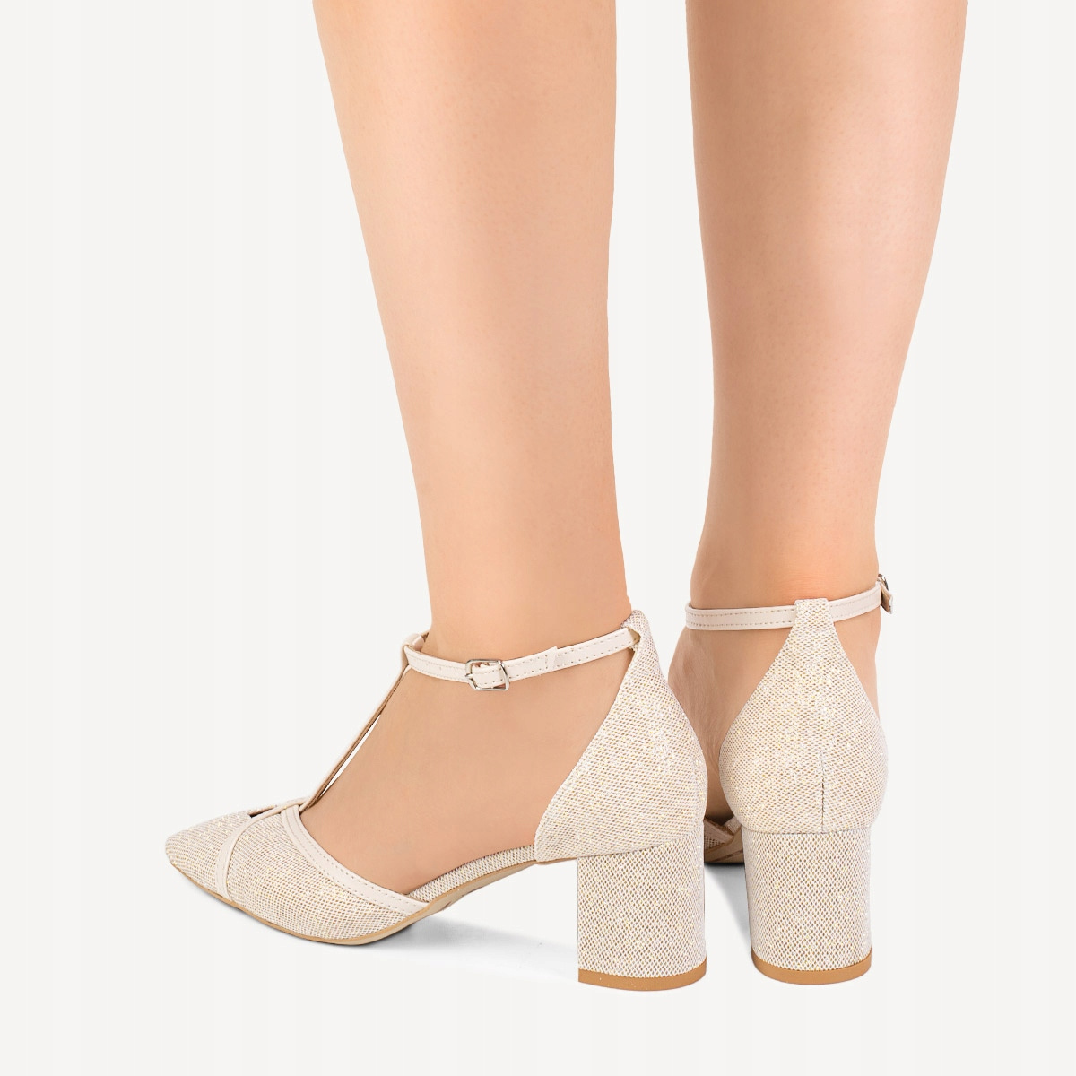 Opinie o Ślubne brokatowe czółenka z ozdobnym paskiem Fatma złote