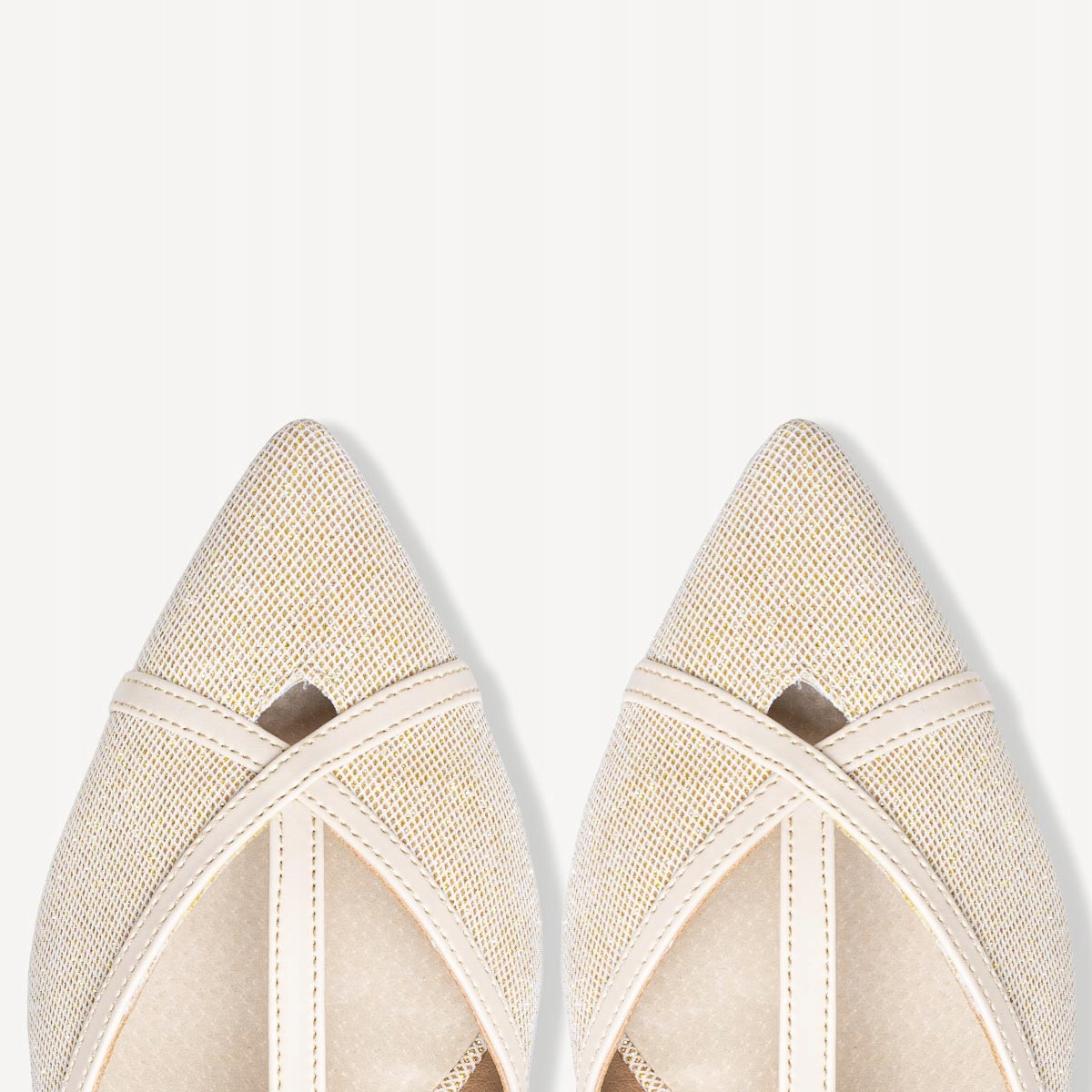 Ślubne brokatowe czółenka z ozdobnym paskiem Fatma w kolorze złotym - idealne pod każdym względem!