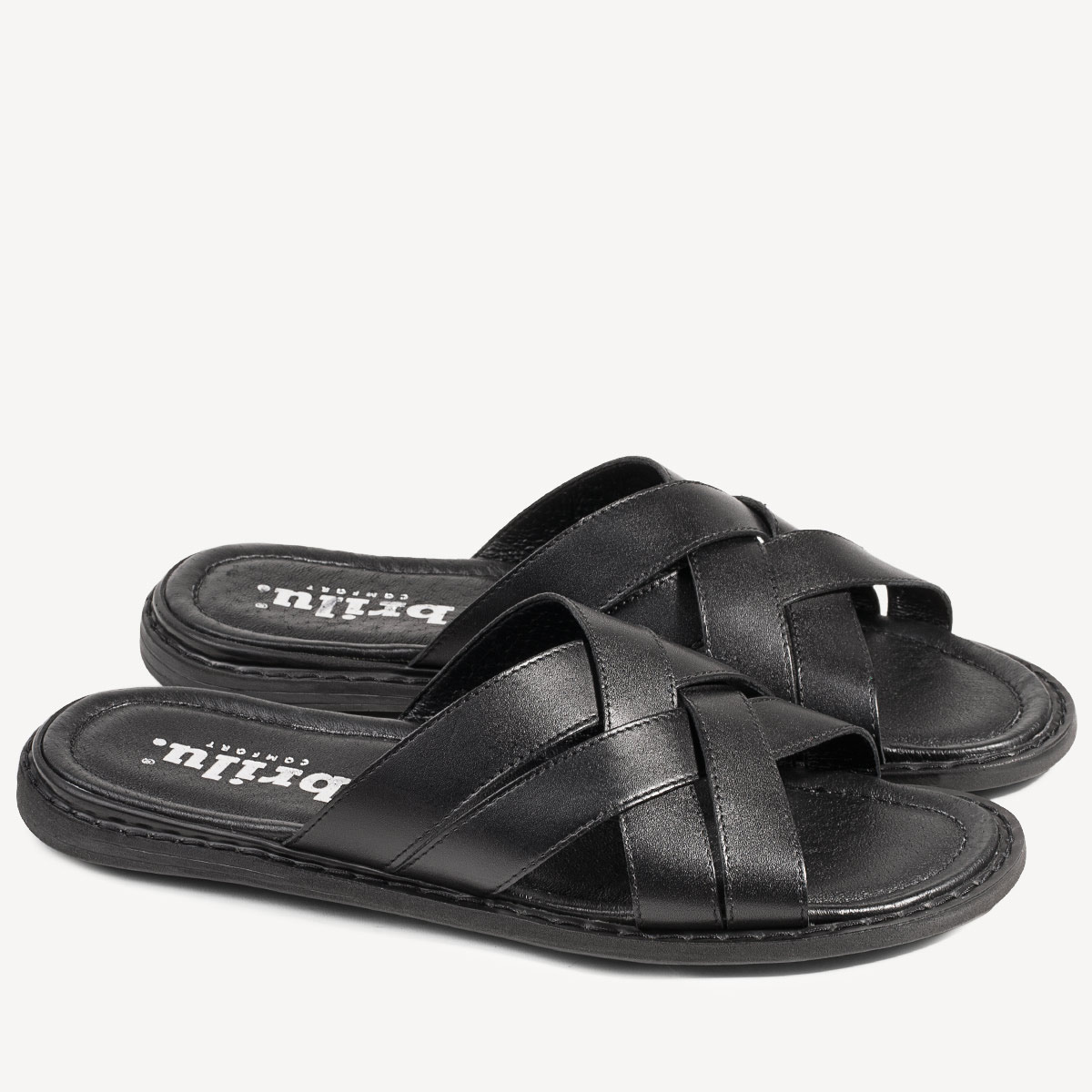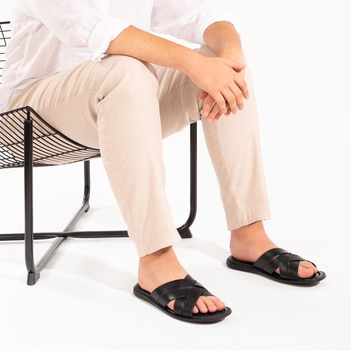 Czarne skórzane męskie klapki wsuwane Owen - po prostu pełen luz nawet podczas gorących miesięcy!