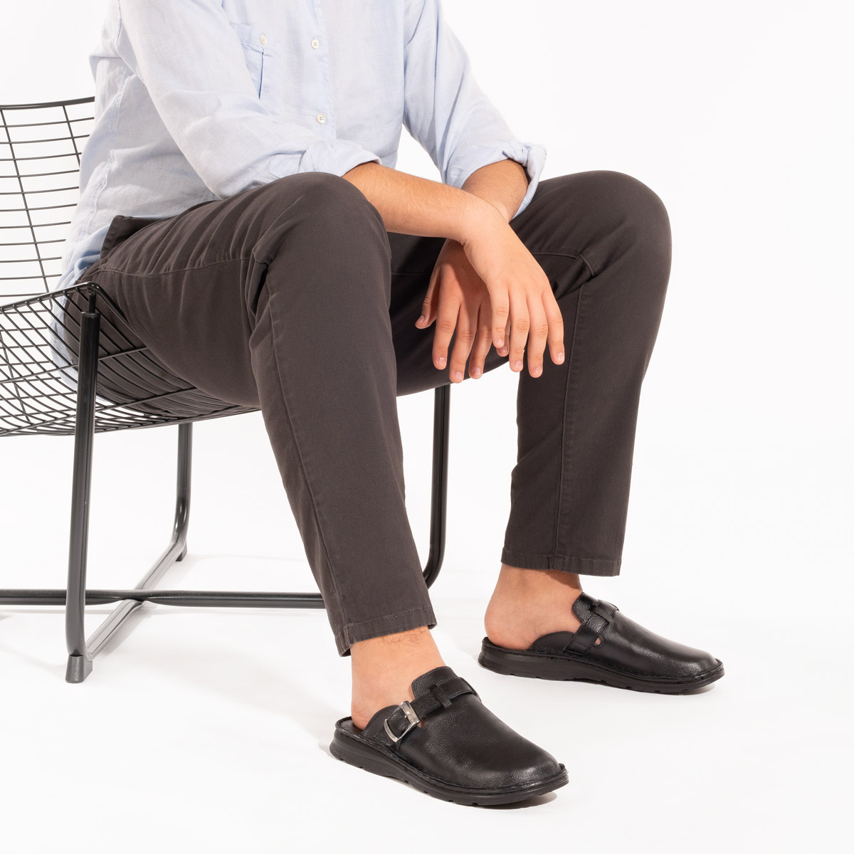 Skórzane męskie klapki z klamrą Tiziano czarne