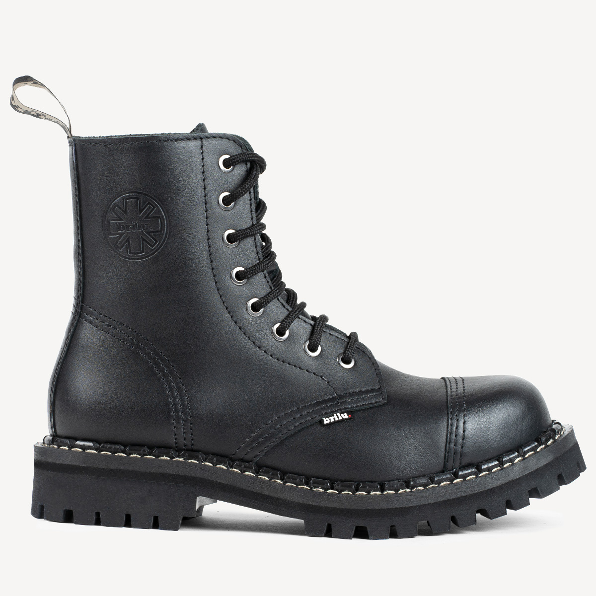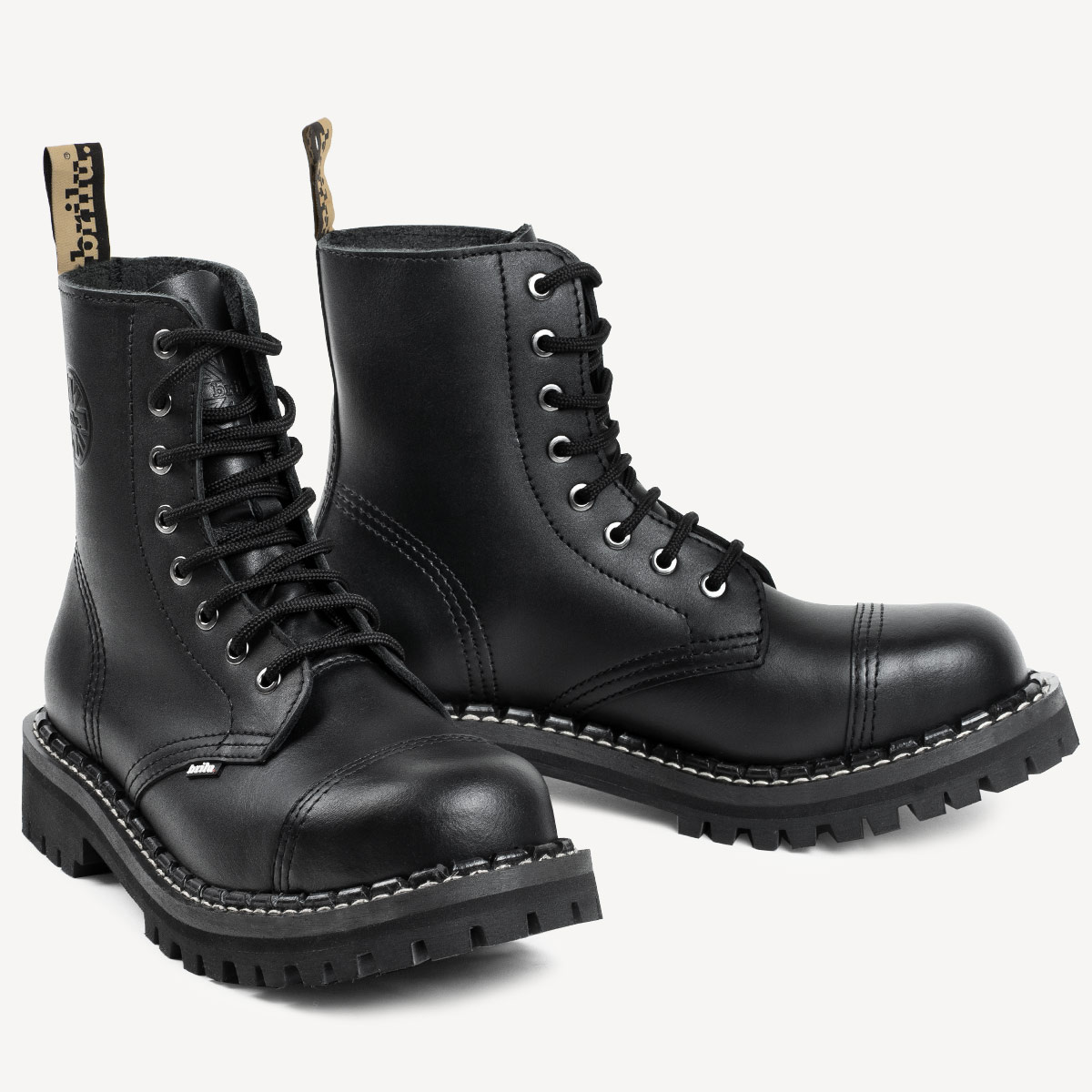 Skórzane glany BRILU wysokie 8-dziurek czarne