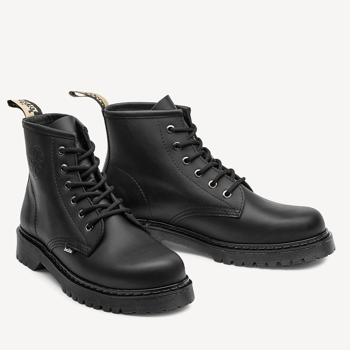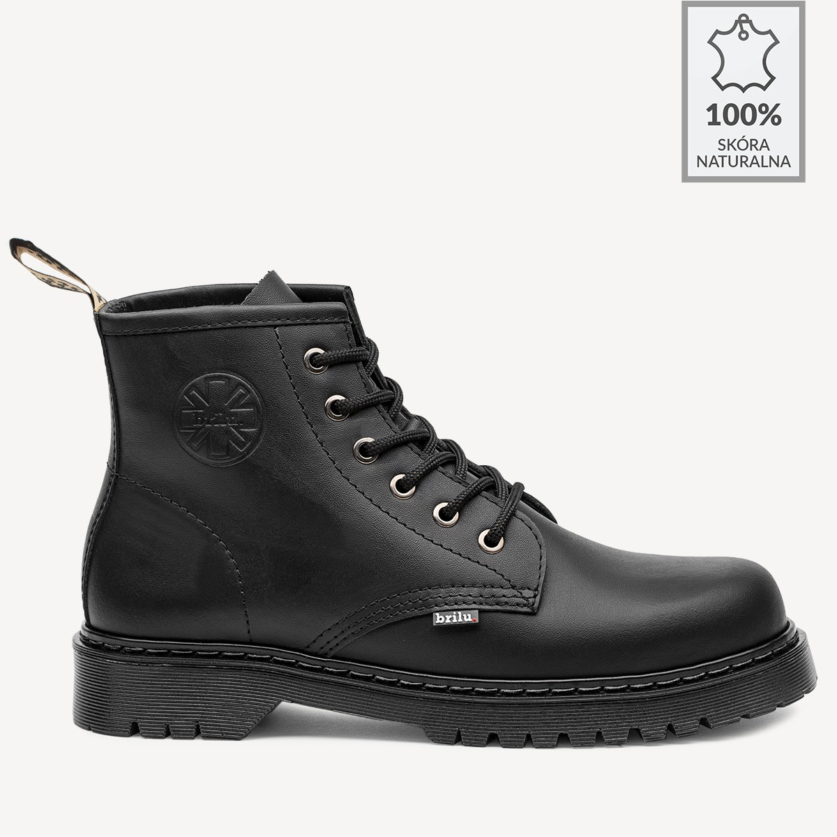 Skórzane glany BRILU wysokie 6-dziurek kauczukowy spód czarne