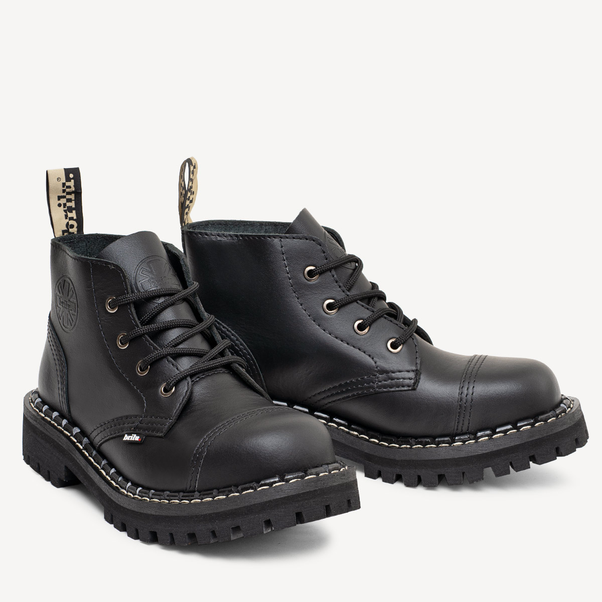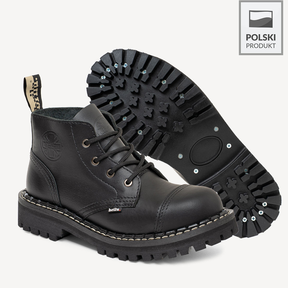 Skórzane glany BRILU niskie 4-dziurki czarne