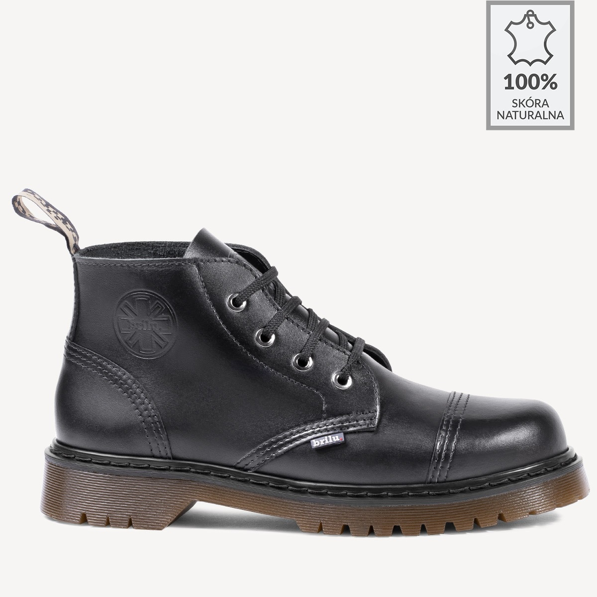 Opinie o Skórzane glany BRILU niskie 4-dziurki kauczukowy spód czarne