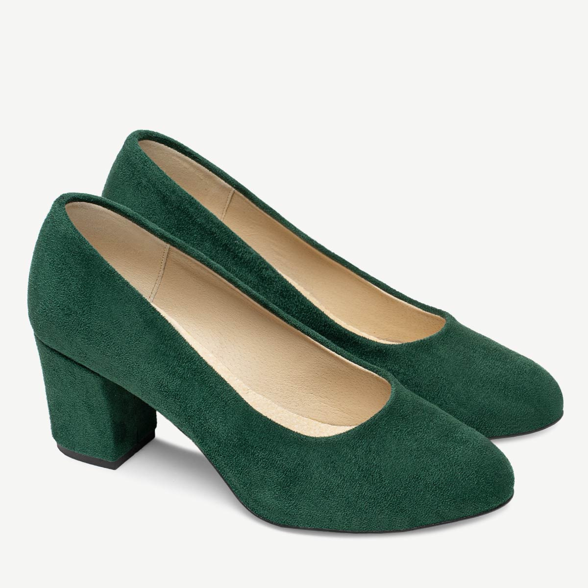 Zamszowe czółenka na niskim słupku Malvina zielone
