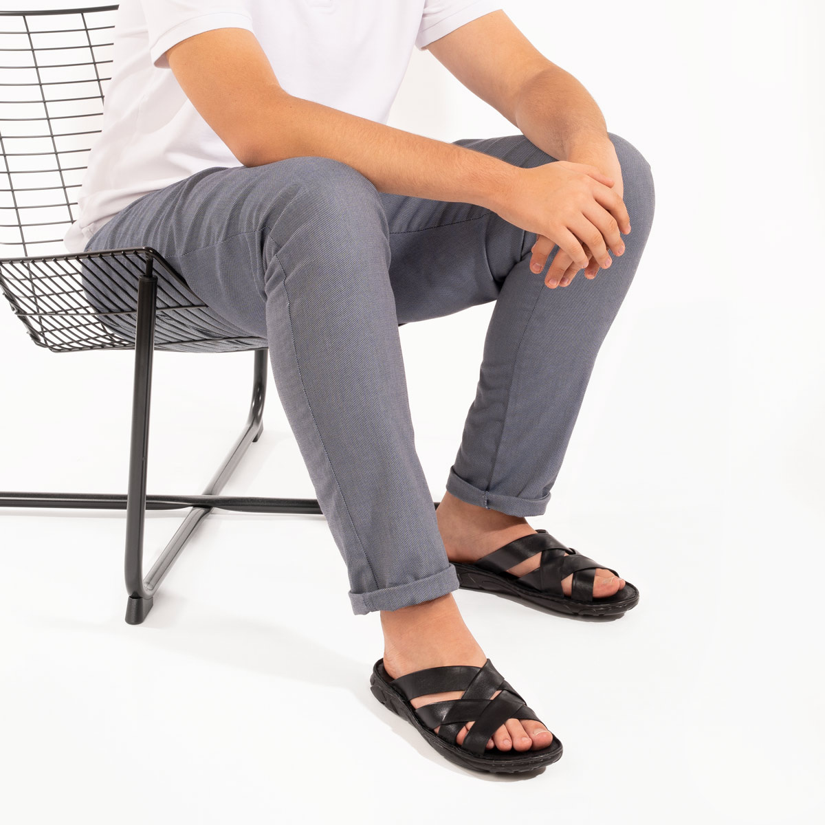 Czarne klapki skórzane Evan zostały w całości wyprodukowane w Polsce. Męskie klapki Evan świetnie sprawdzą się zarówno podczas codziennych obowiązków, jak i wakacyjnych chwil relaksu na świeżym powietrzu. Doskonale pasują do casualowych stylizacji, krótkich spodenek, t-shirtów lub luźnych materiałowych spodni, dodając każdemu outfitowi nieco eleganckiego luzu.