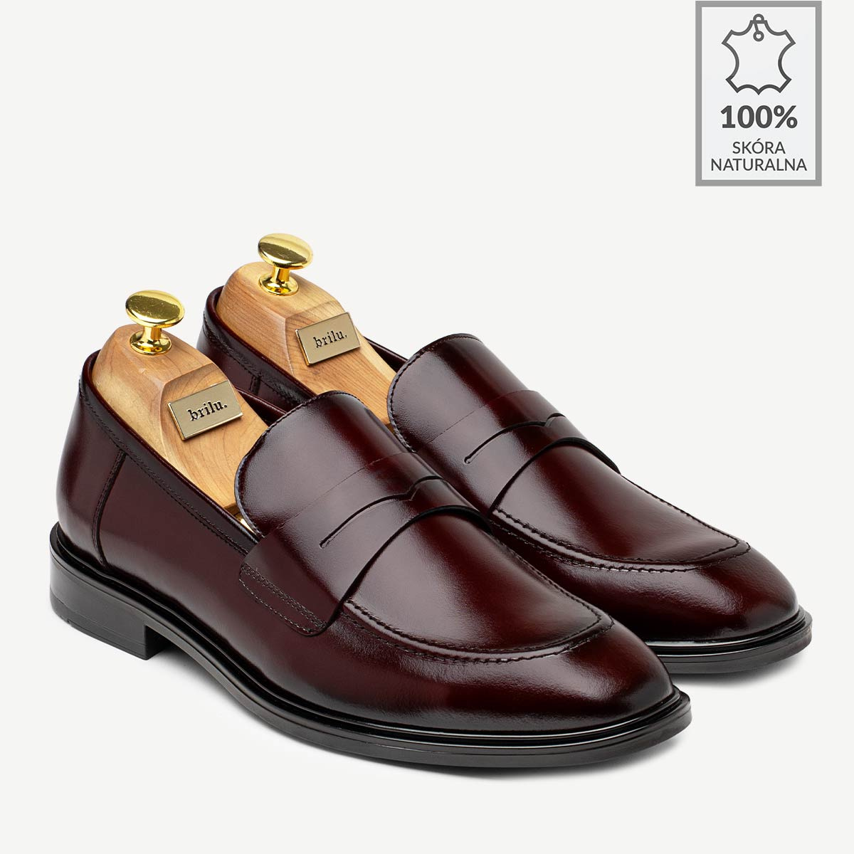 Bordowe męskie loafersy ze skóry naturalnej Matthew - dla panów z klasą…