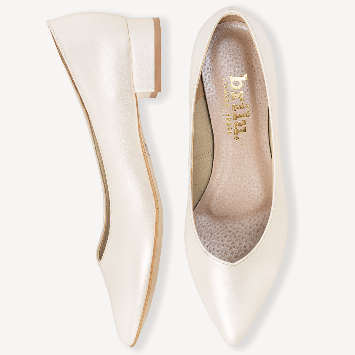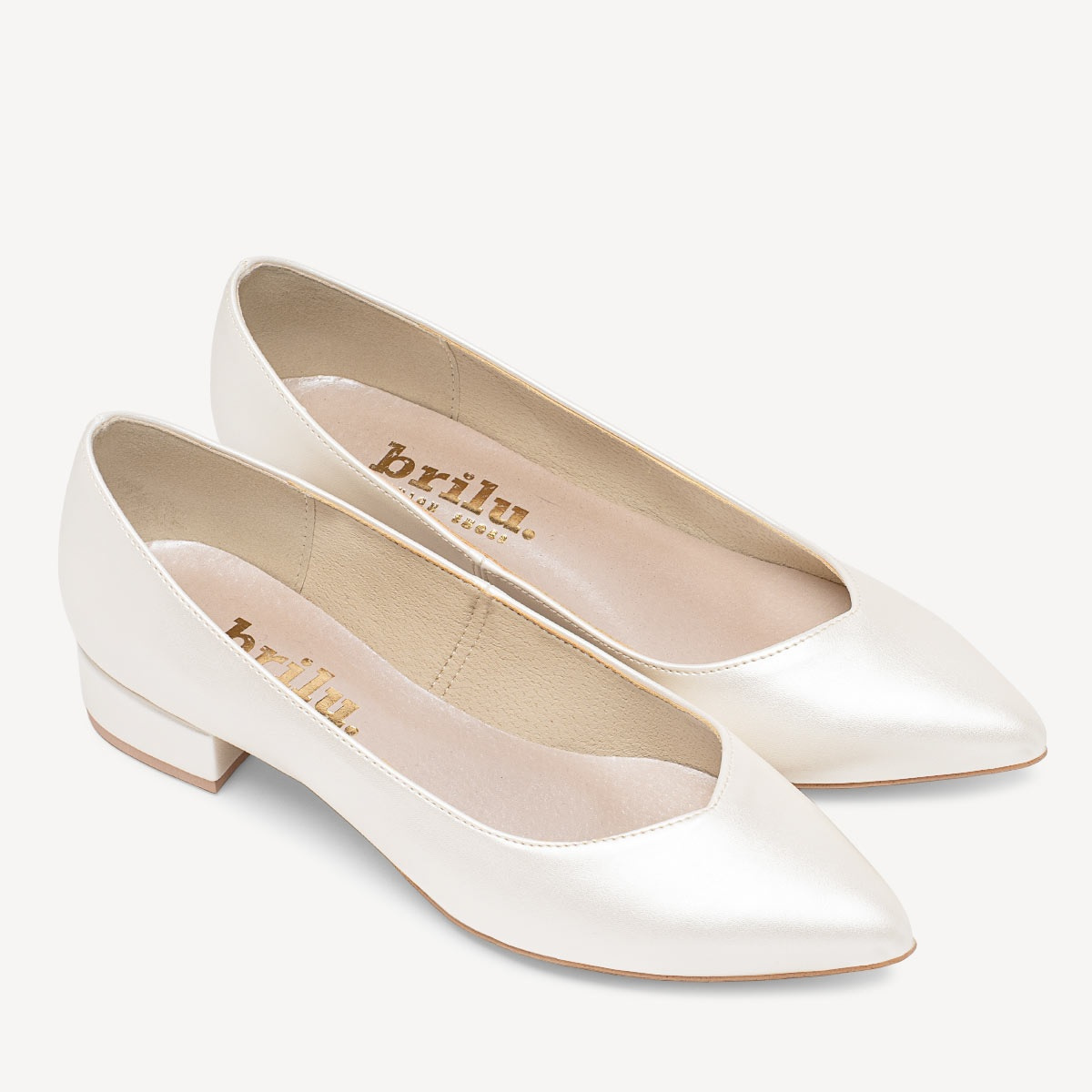 Ślubne perłowe balerinki z wyciętą w szpic cholewką Ophelia ivory