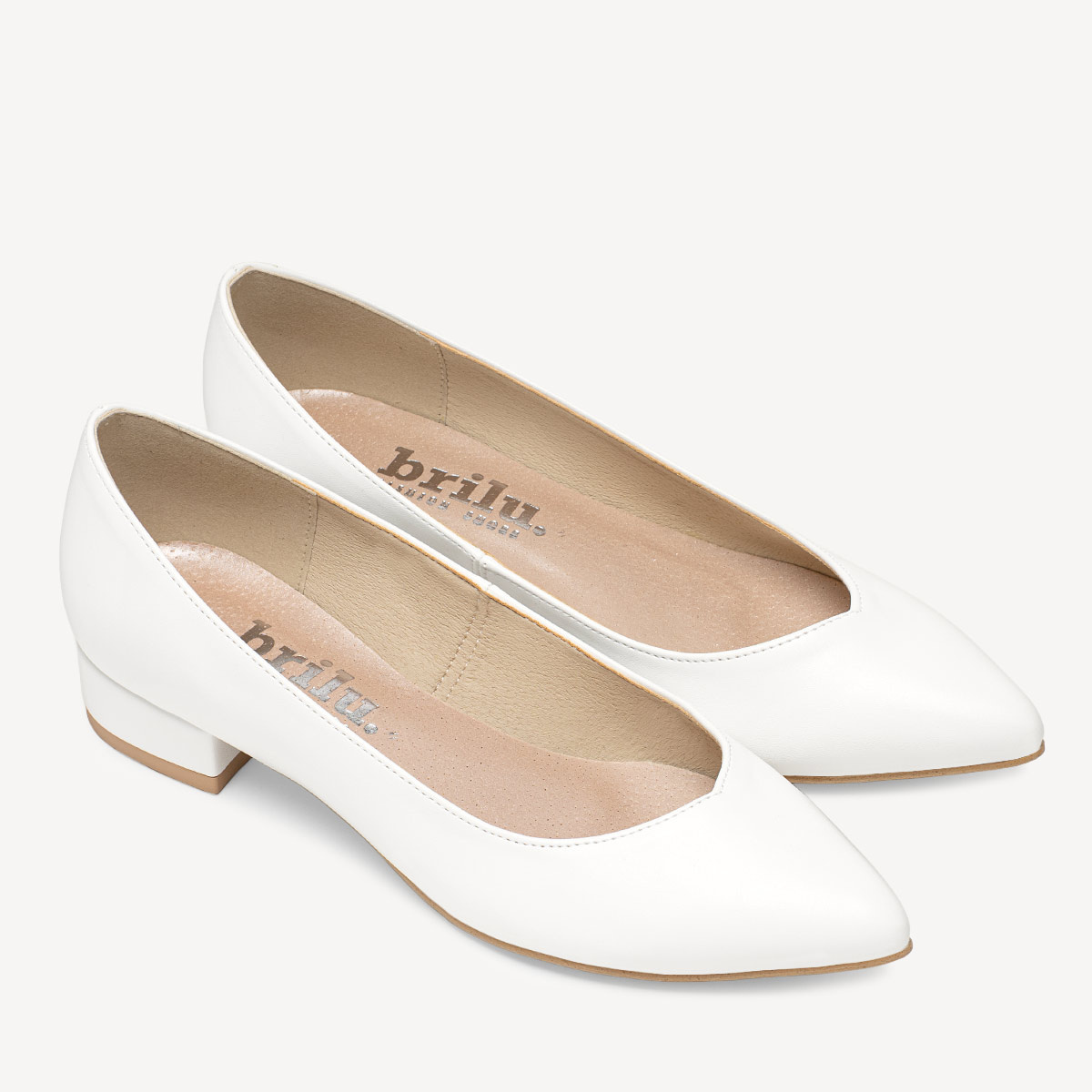 Ślubne licowe balerinki z wyciętą w szpic cholewką Ophelia białe