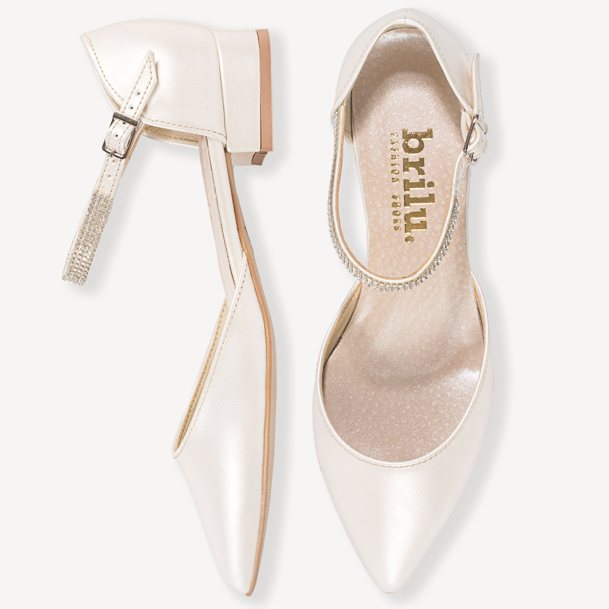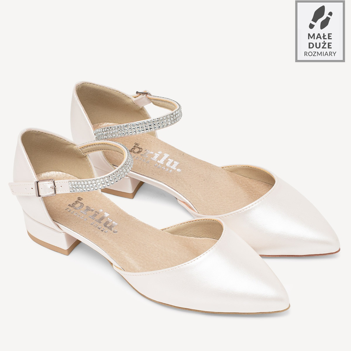 Ślubne perłowe balerinki z ozdobnym paskiem Alice ivory