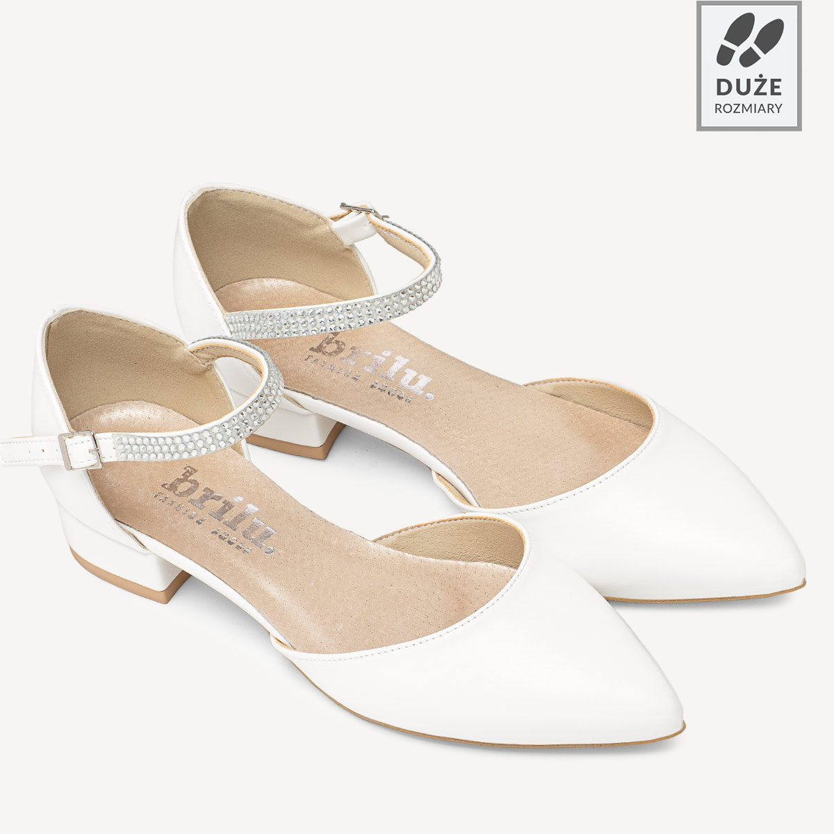 Ślubne licowe balerinki z ozdobnym paskiem Alice białe