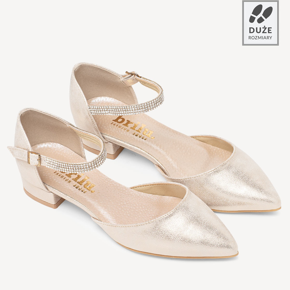 Ślubne połyskujące balerinki z ozdobnym paskiem Alice złote