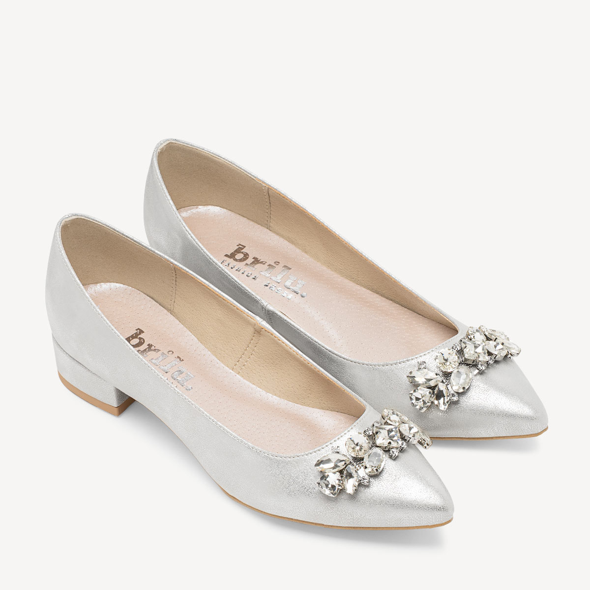 Ślubne połyskujące balerinki z ozdobą Anita srebrne