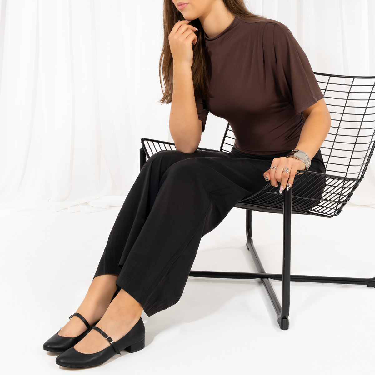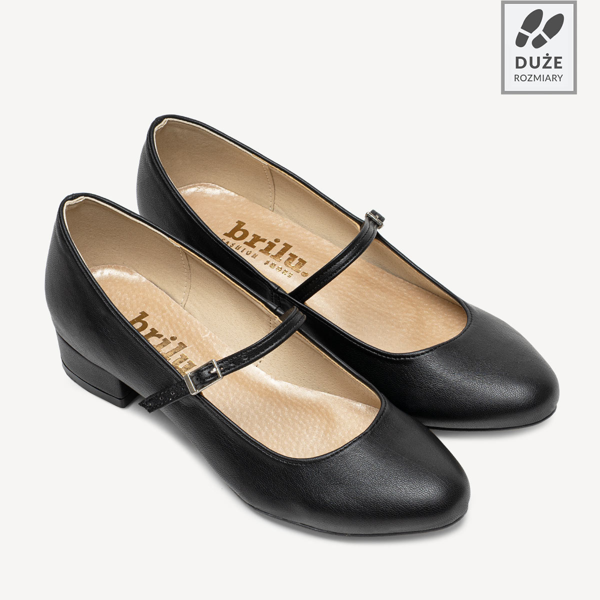 Czarne licowe balerinki z paskiem Joelle - na wiele różnych okazji