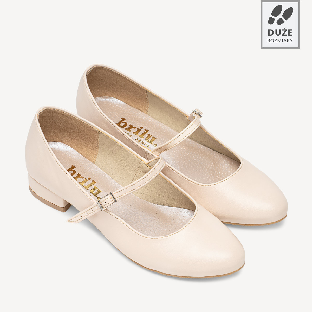 Ślubne licowe balerinki z paskiem Joelle cieliste ecru