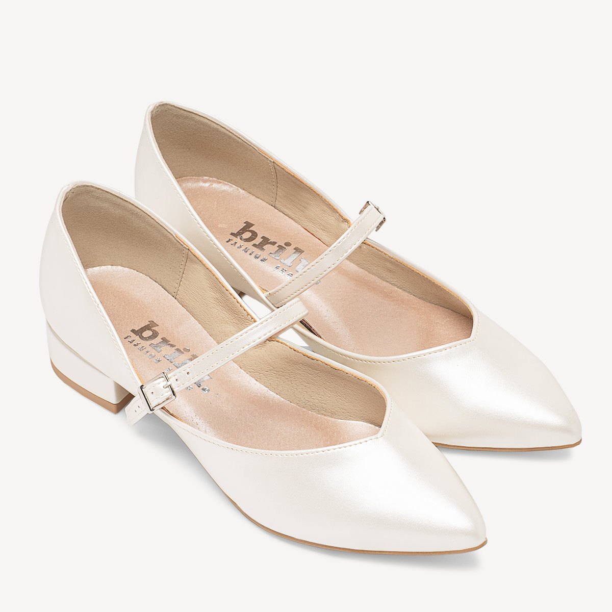 Perłowe ślubne balerinki z paskiem Caprii ivory