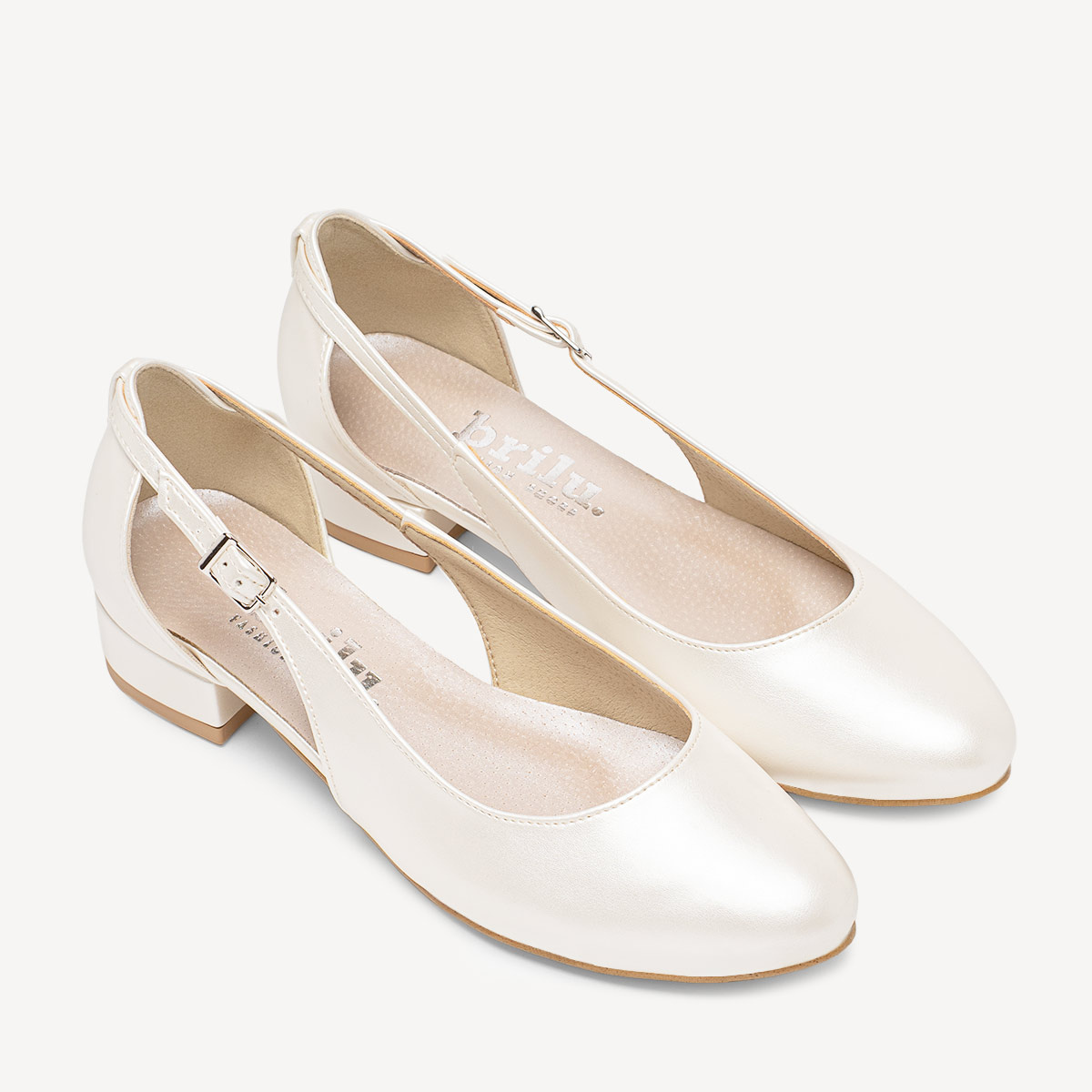 Ślubne perłowe balerinki z wyciętą na bokach cholewką Sandy ivory
