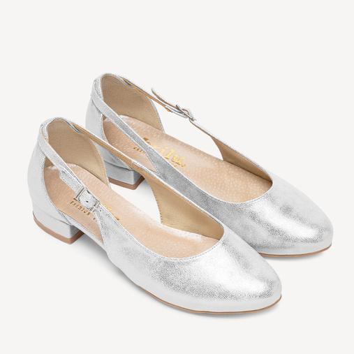 Ślubne połyskujące balerinki z wyciętą na bokach cholewką Sandy srebrne