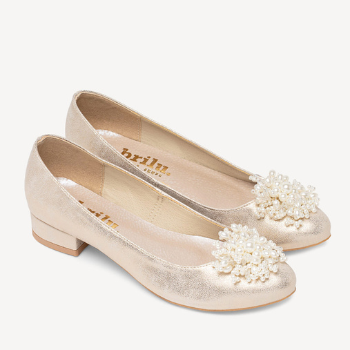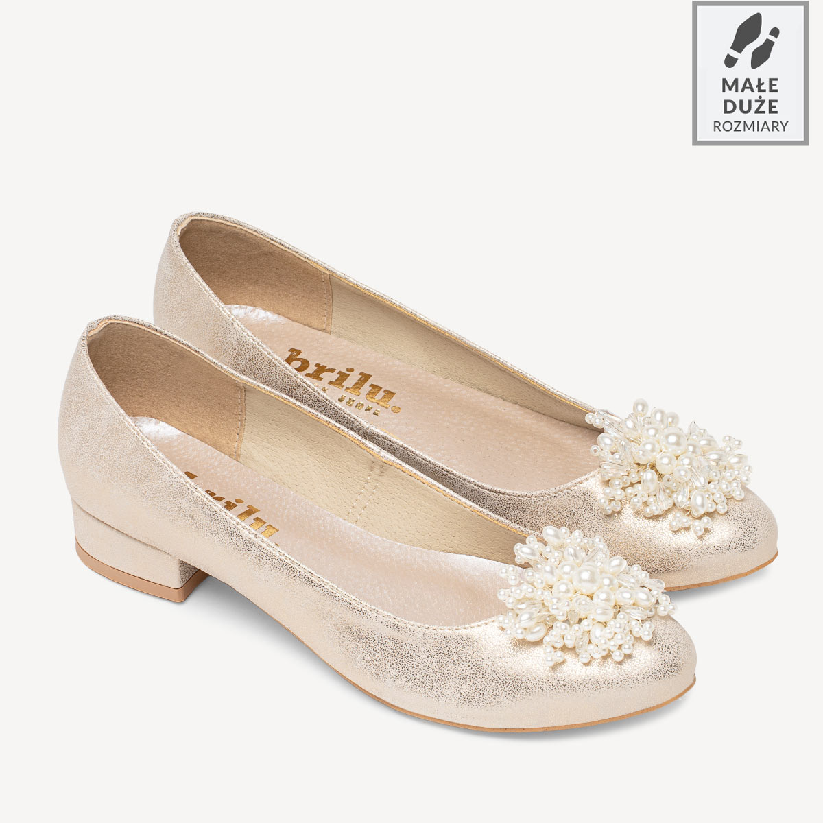 Ślubne połyskujące balerinki z perłową ozdobą Amaris złote