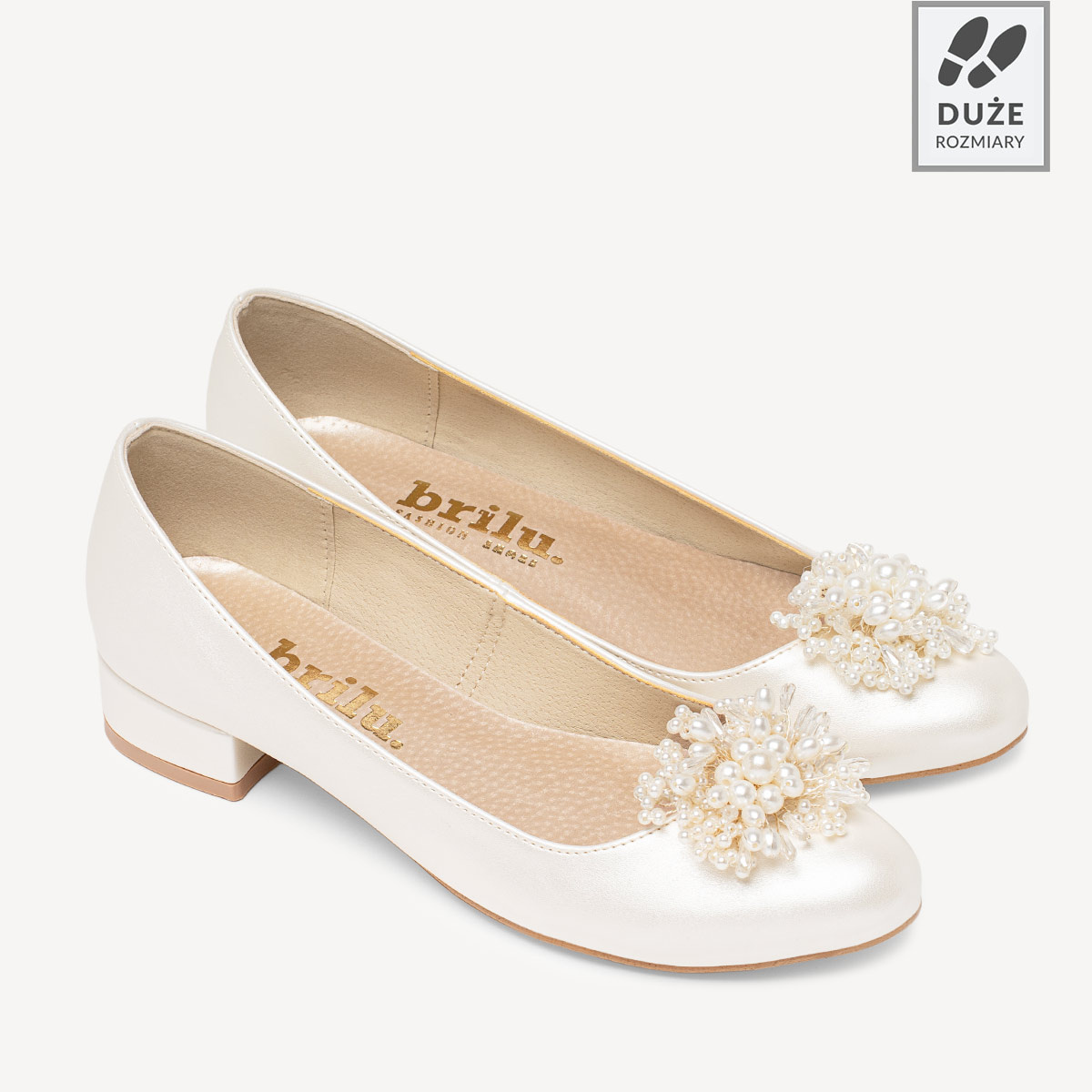Ślubne perłowe balerinki z perłową ozdobą Amaris ivory