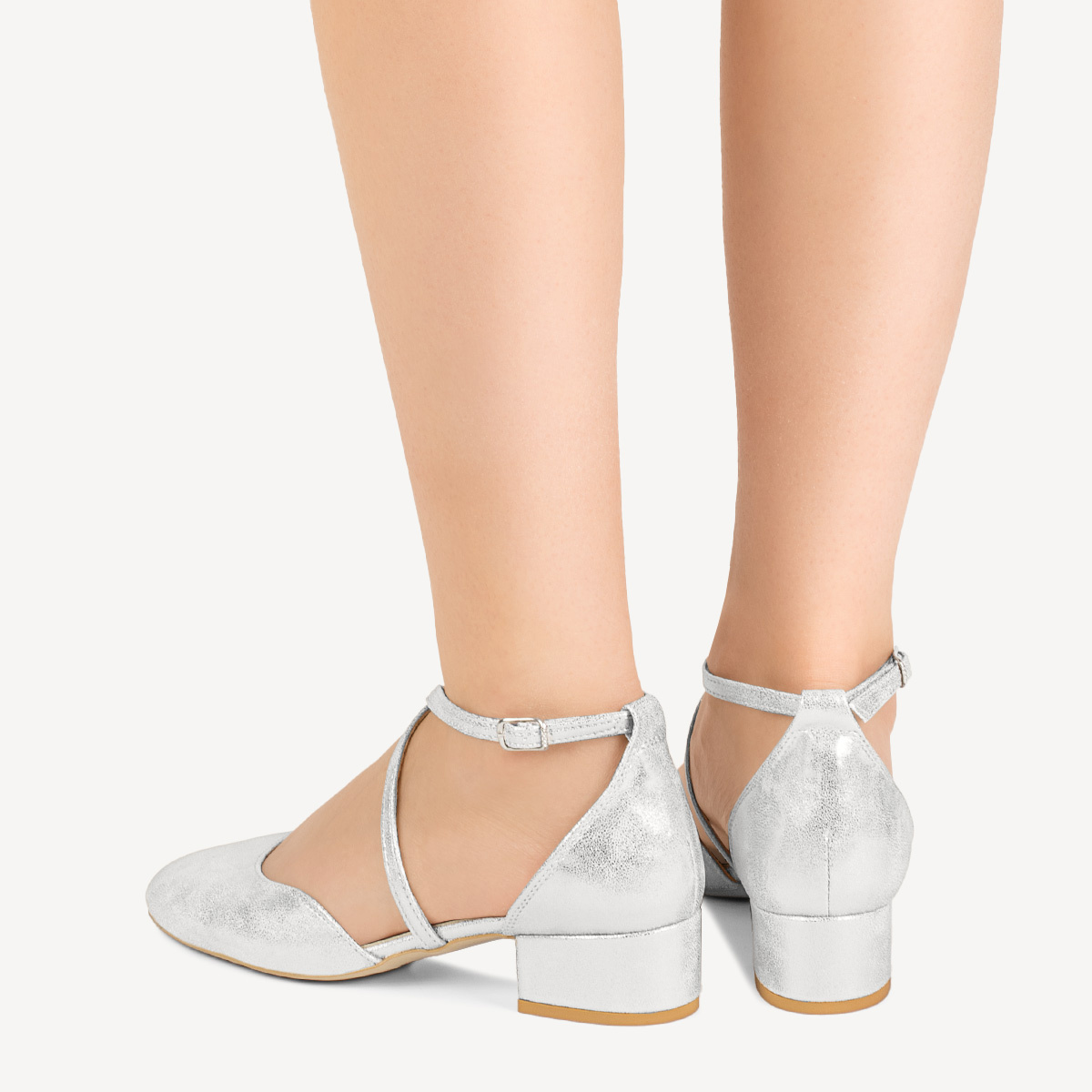 Licowe czółenka na niskim obcasie z paseczkami Lina srebrne