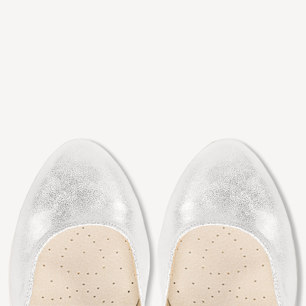 Opinie o Licowe czółenka na niskim obcasie z paseczkami Lina srebrne