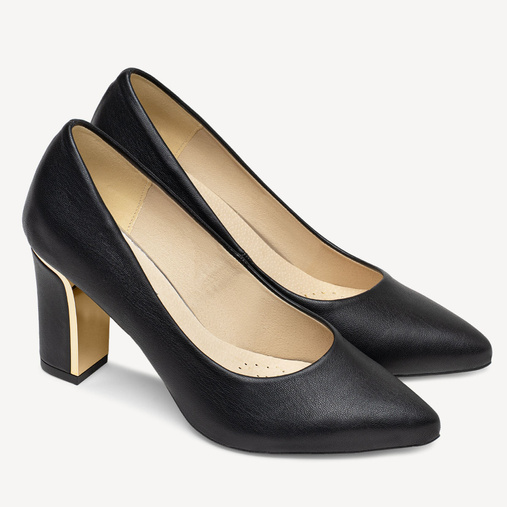 Licowe czółenka na ozdobnym obcasie Griselle czarne