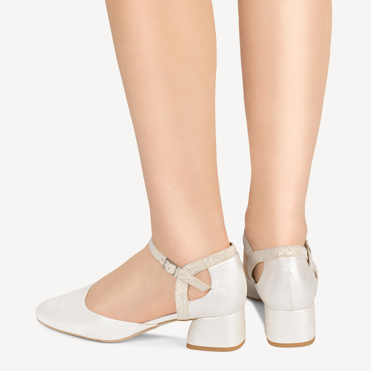 Perłowe czółenka ślubne z wycięciami przy pięcie Carlla ivory