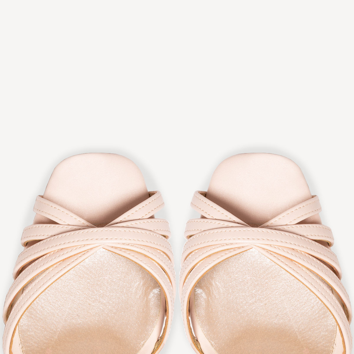 Licowe sandały ślubne na słupku i platformie Lynda cieliste ecru