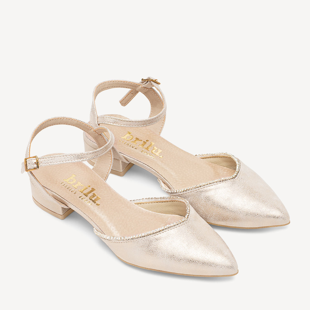 Ślubne połyskujące balerinki z cyrkoniami przy cholewce Raisa w kolorze złotym - piękne…