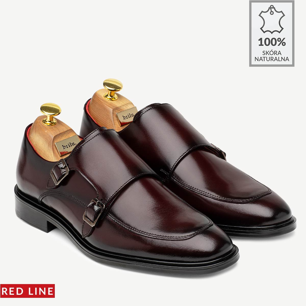 Eleganckie skórzane monki ze sprzączkami Bruce bordowe