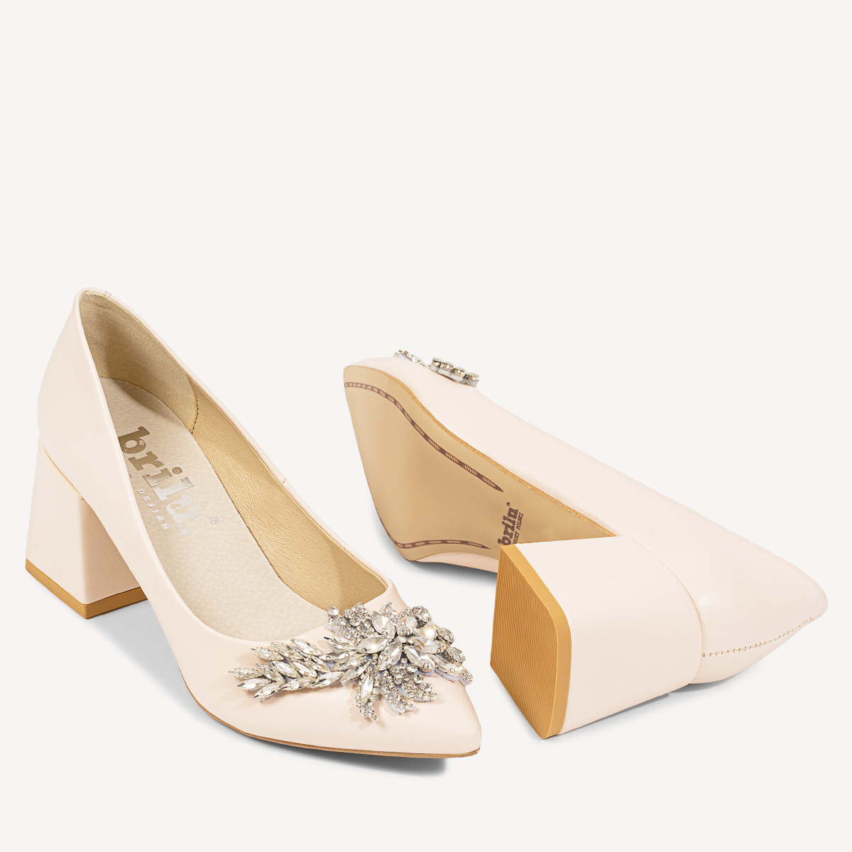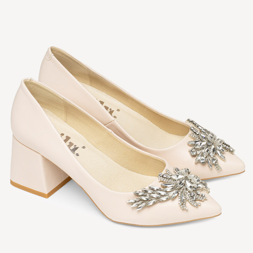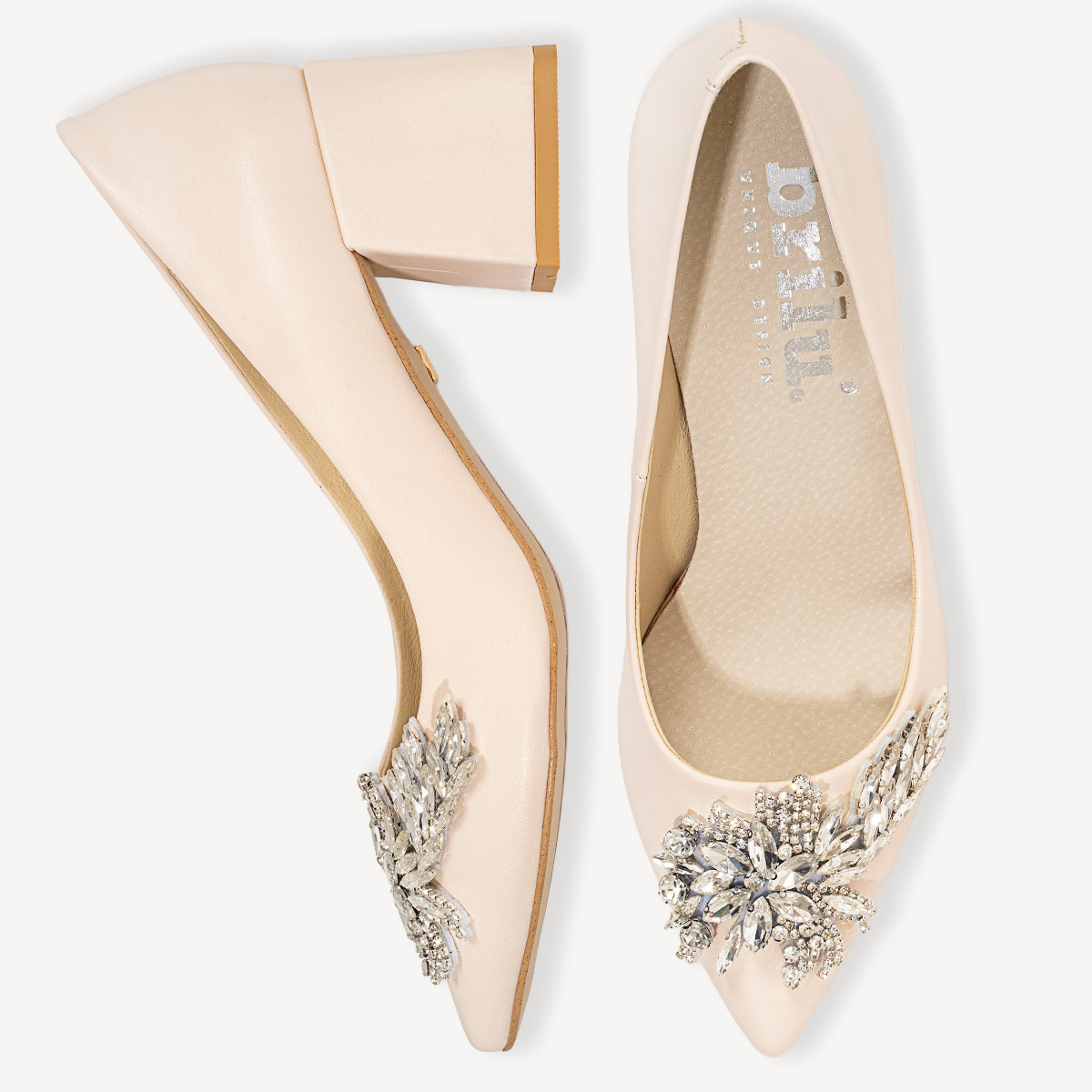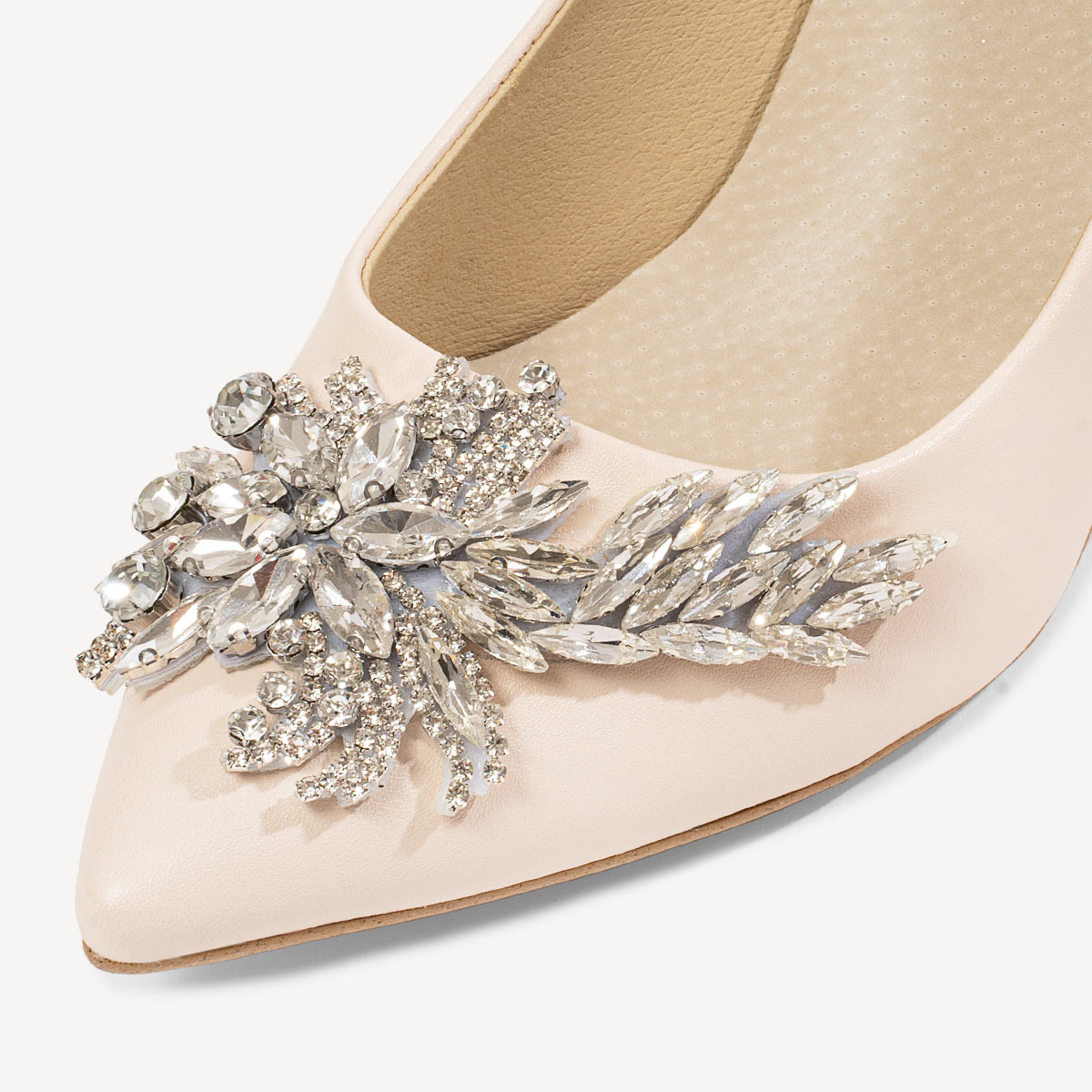 Ślubne czółenka z kryształową ozdobą Victoria cieliste ecru