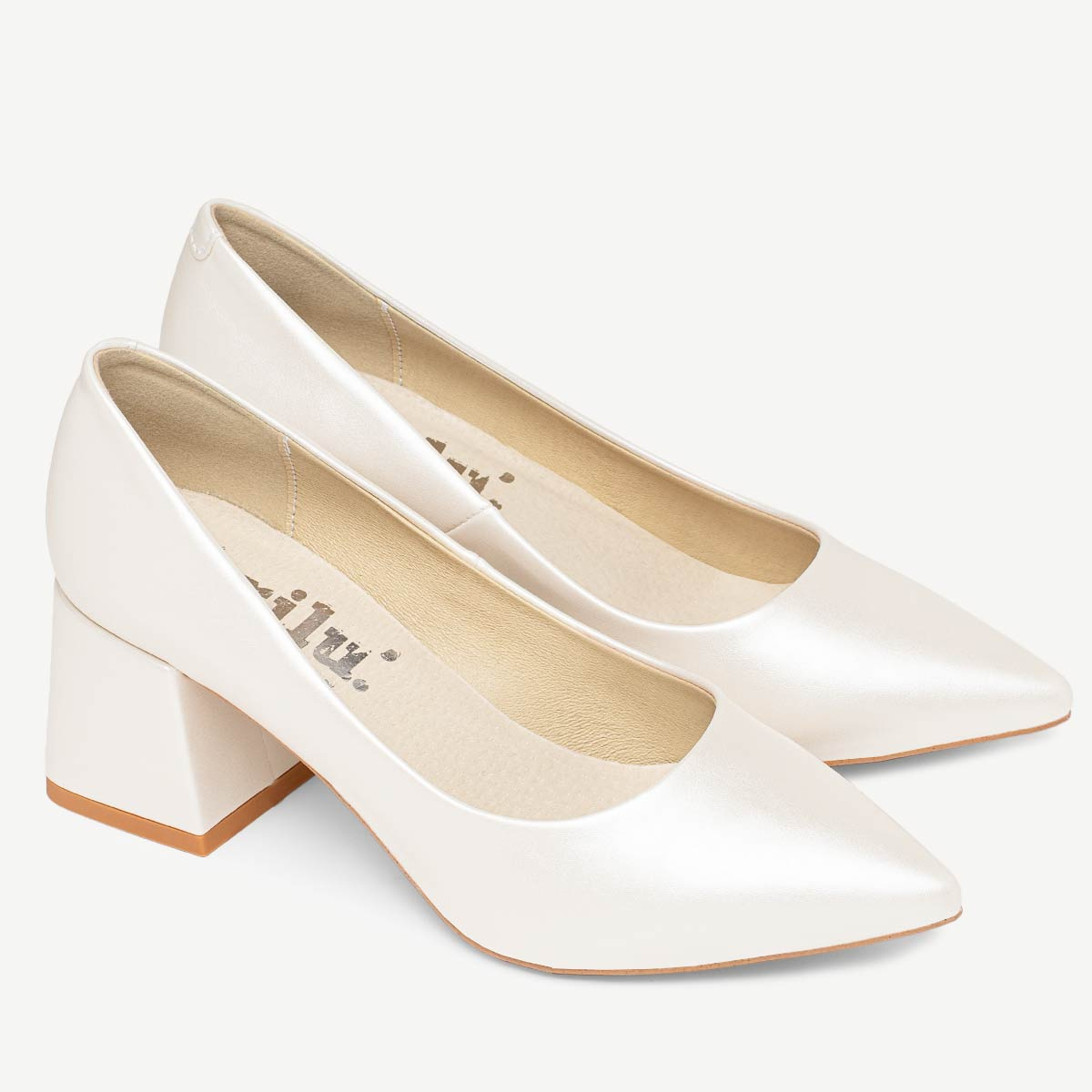 Ślubne perłowe czółenka na słupku Brook w kolorze ivory - śliczne…