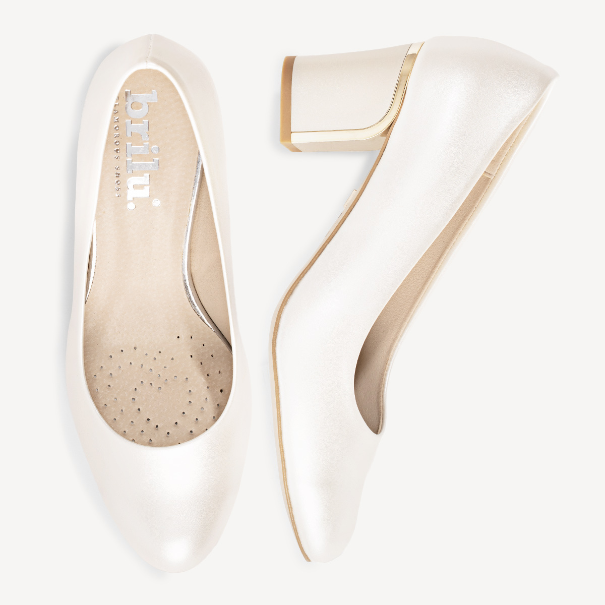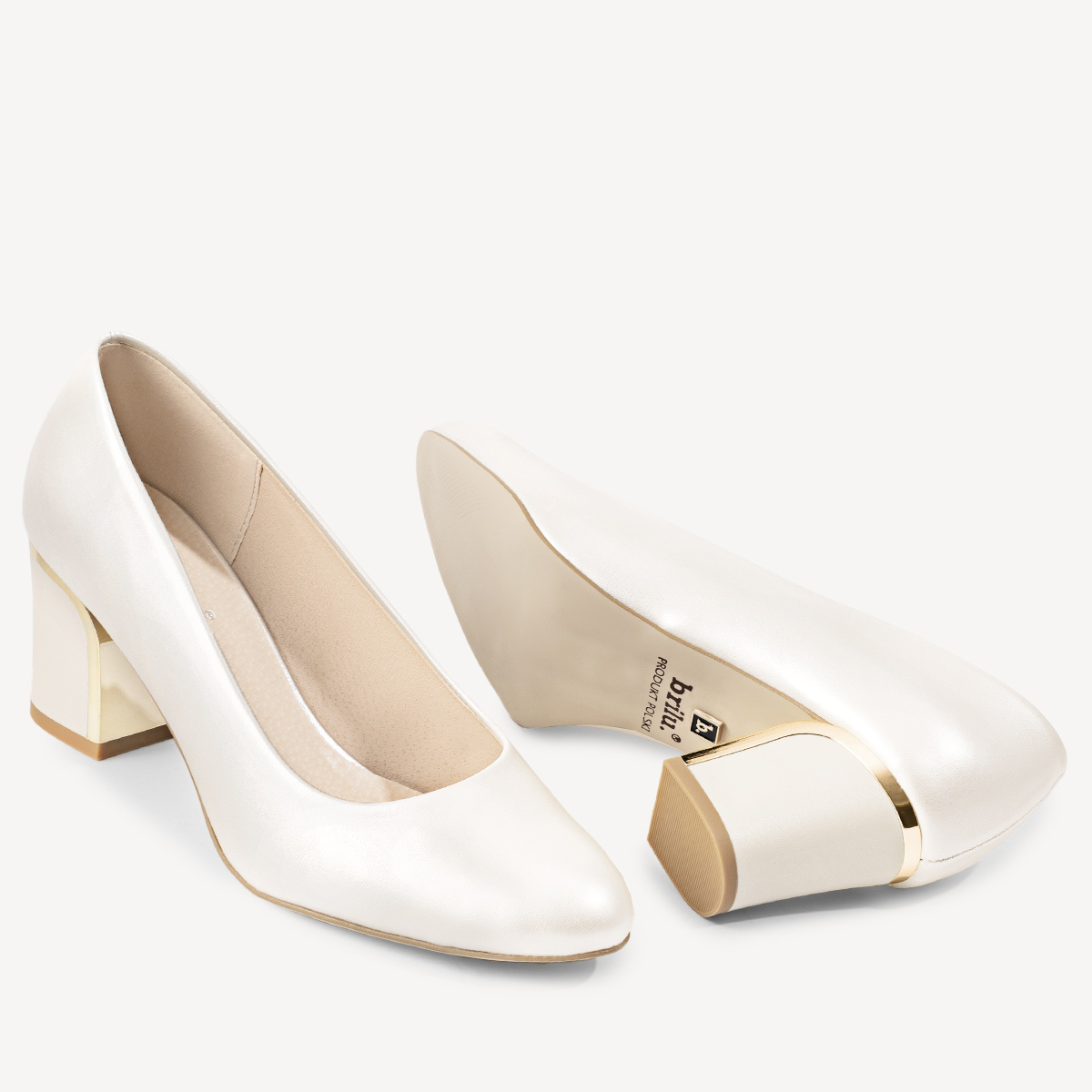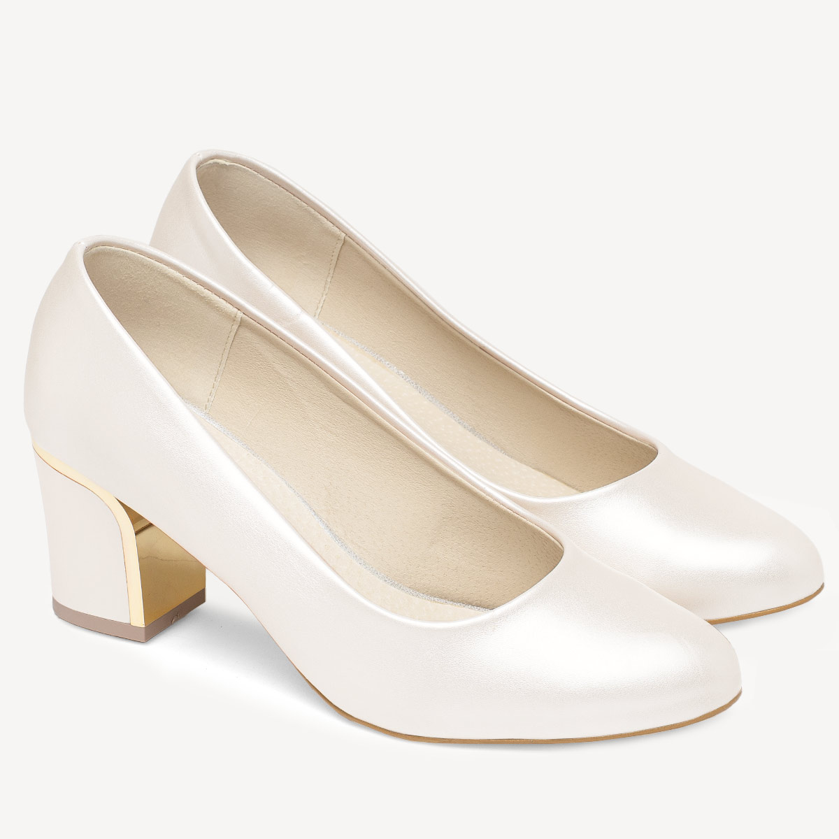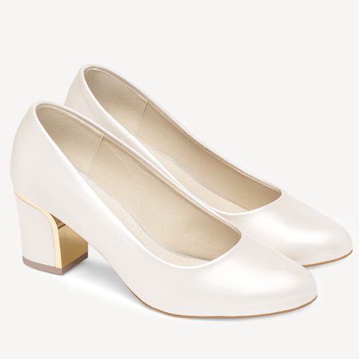 Ślubne perłowe czółenka z ozdobnym obcasem Amber ivory