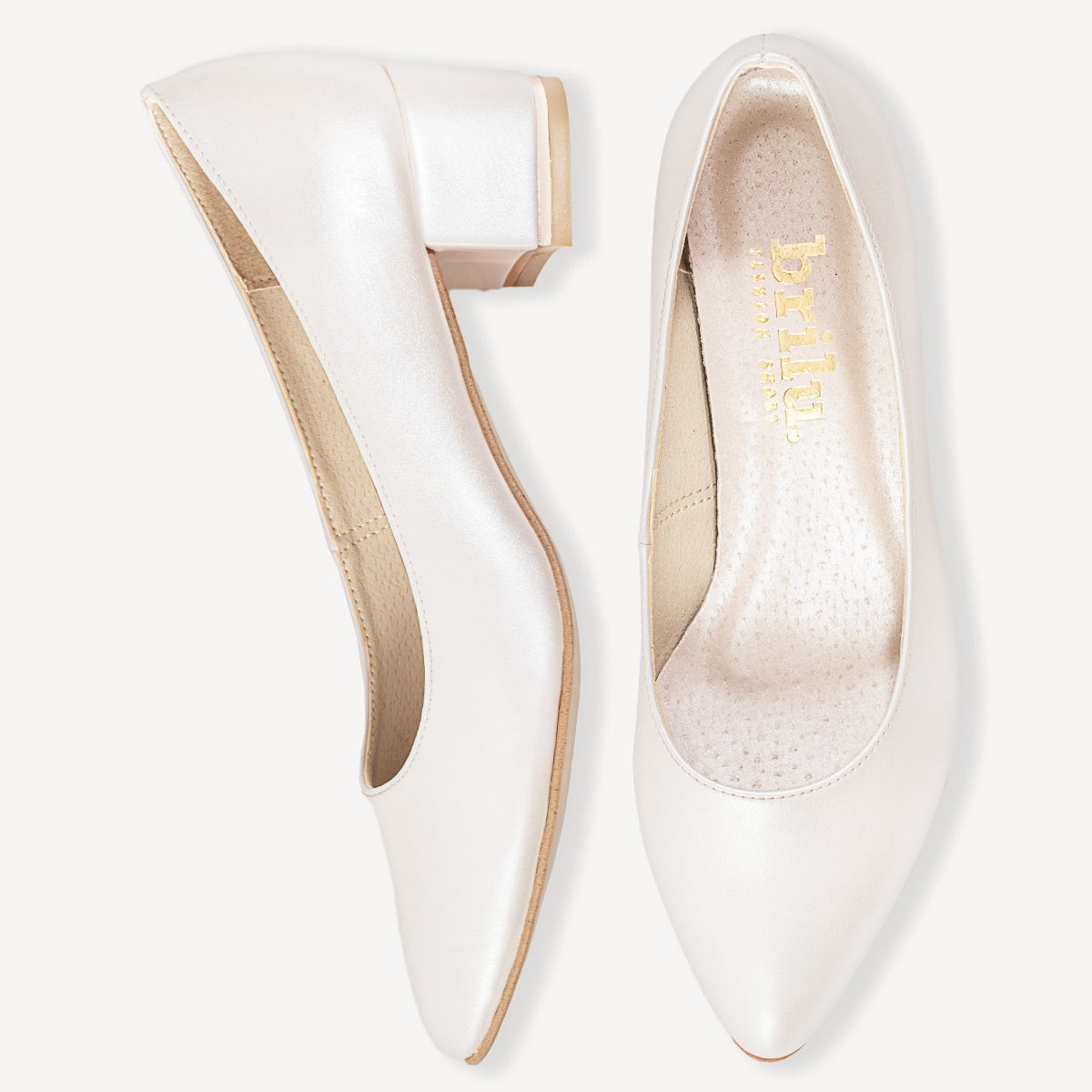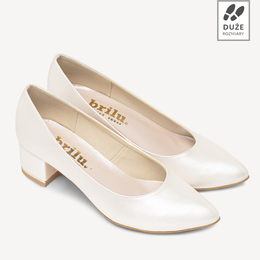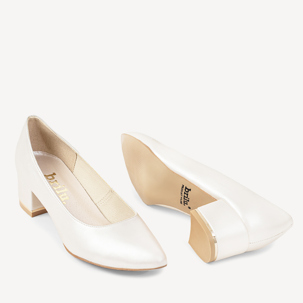 Ślubne perłowe czółenka na klocku ze złotą wstawką Journey ivory