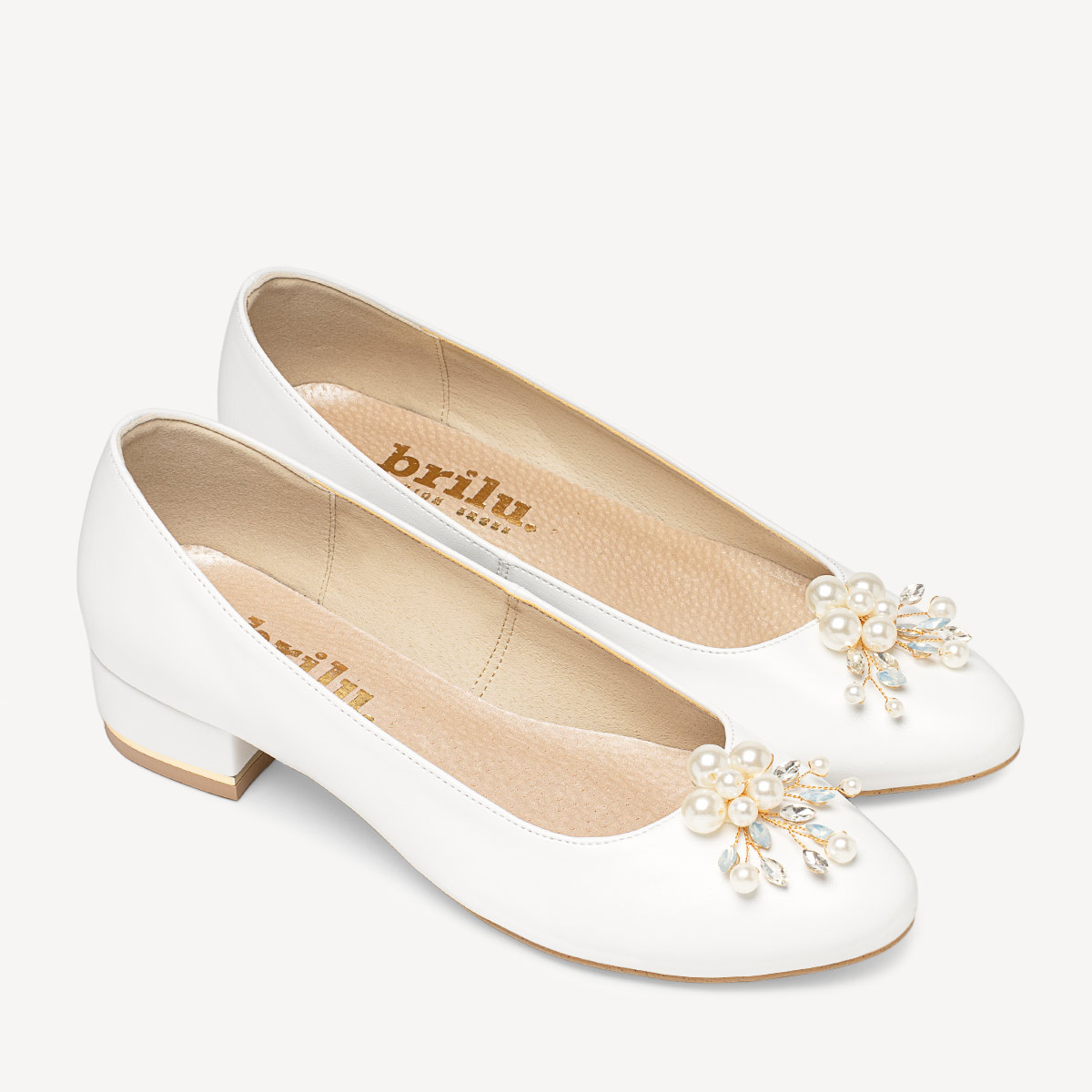 Ślubne balerinki z ozdobą z perełek Harlow białe