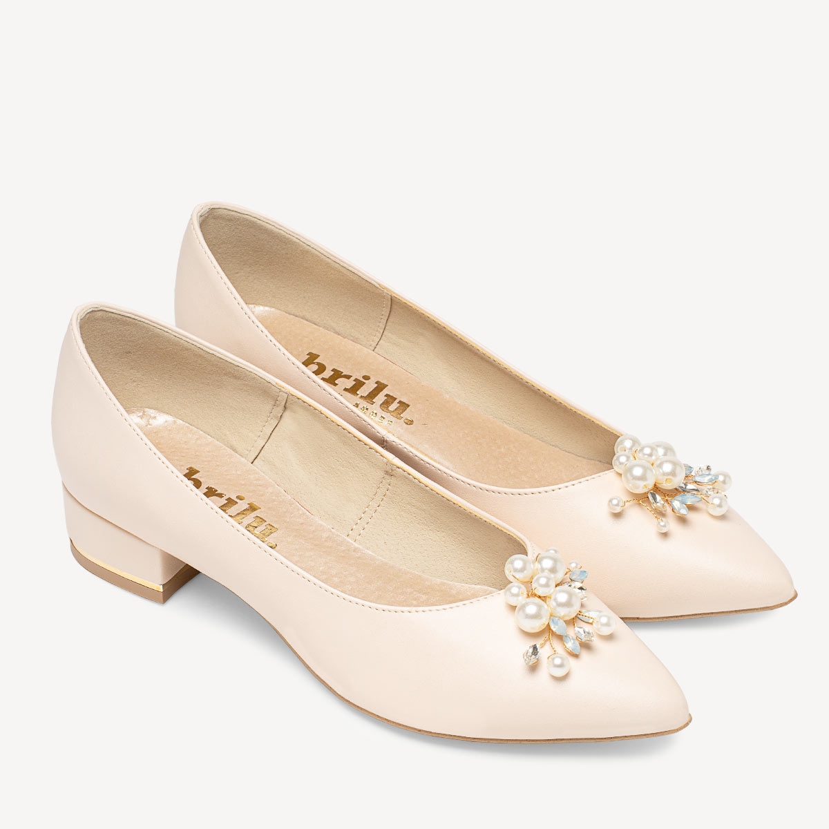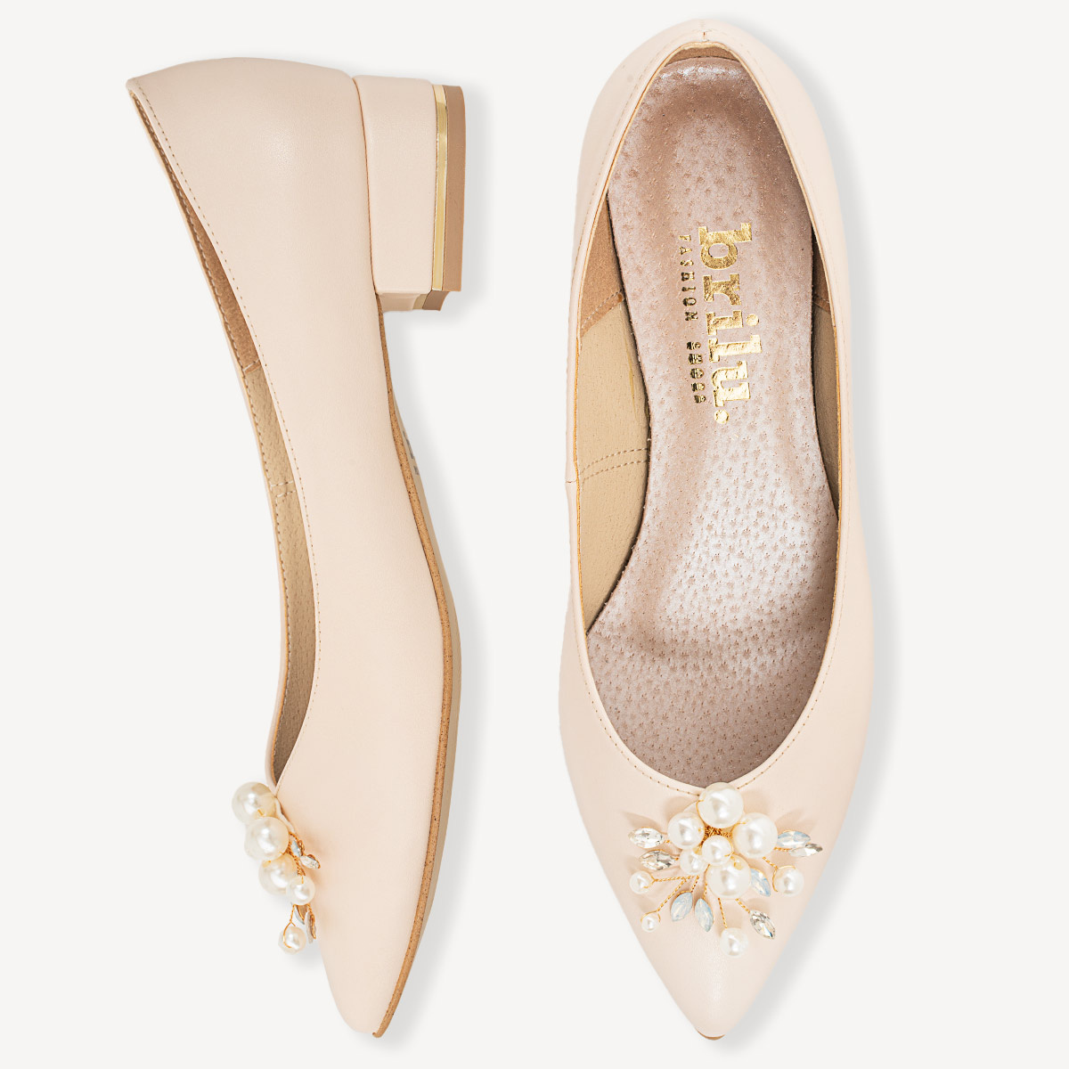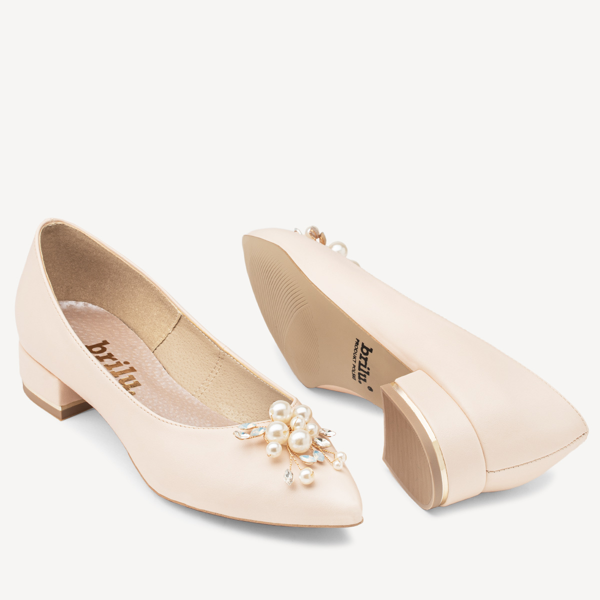 Ślubne balerinki z perłową ozdobą Gladys w kolorze cielistym ecru - lekkie i wygodne