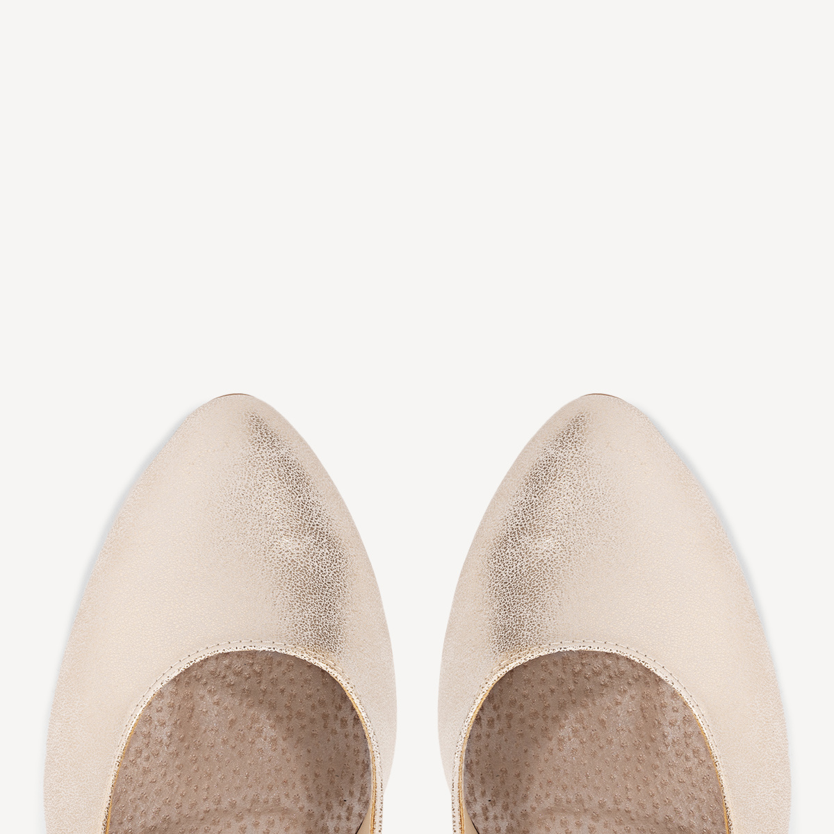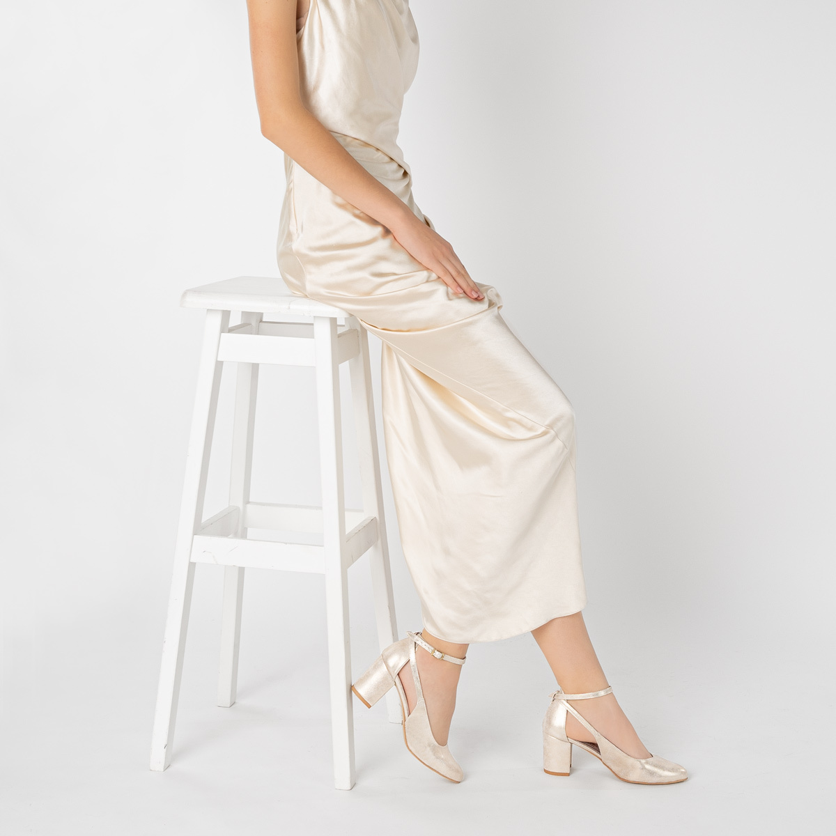 Połyskujące ślubne czółenka z paseczkiem Feith złote