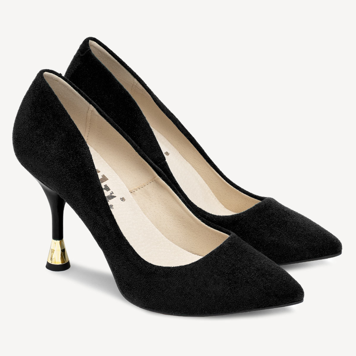 Zamszowe szpilki z ozdobnym obcasem Allison czarne