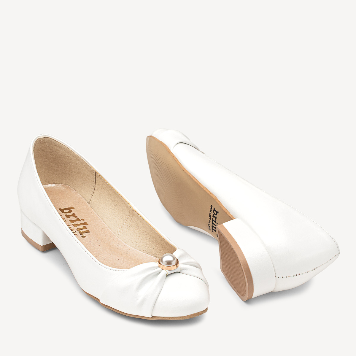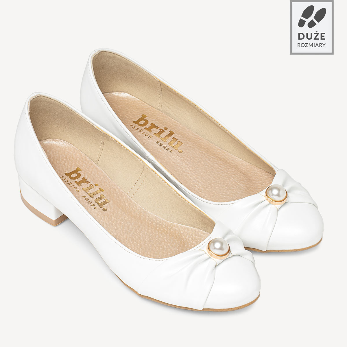 Ślubne baleriny z perełką Cassie w kolorze białym - lekkie i wygodne!