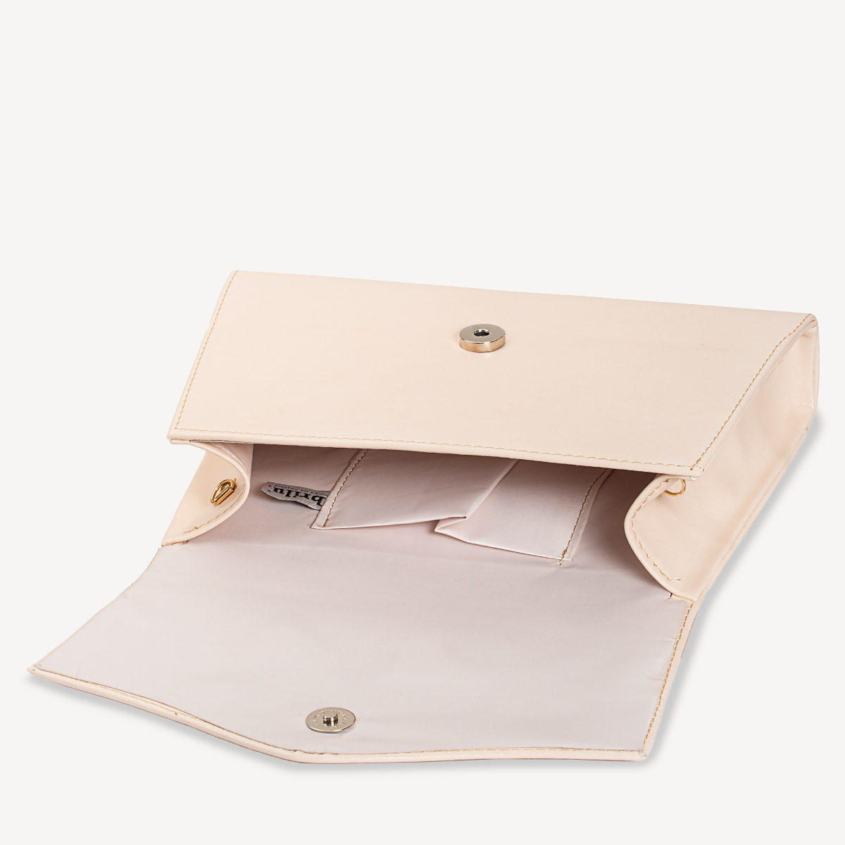 Torebka Marissa to doskonały dodatek do stylizacji na wydarzenia okolicznościowe, np. ślub, wesele, studniówka, impreza czy biznesowe spotkanie. Listonoszka Marissa to doskonały dodatek łączący klasykę i elegancję - wzór i kolor torebki sprawdzi się dla Panien Młodych jako dodatek do sukni ślubnej, jak również na inne okazje. Listonoszkę Marissa w kolorze cielistym ecru możesz skomponować z odcieniami bieli, czerni, czerwieni, zieleni, fioletu.