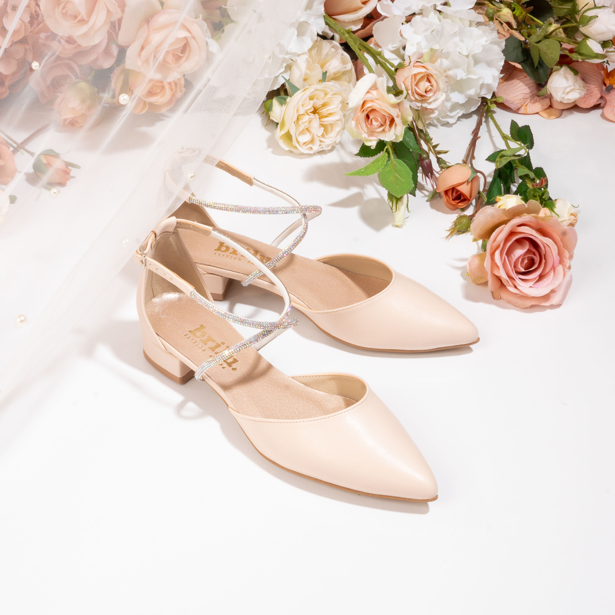 Ślubne balerinki z cyrkoniowymi paseczkami Pricilla cieliste ecru