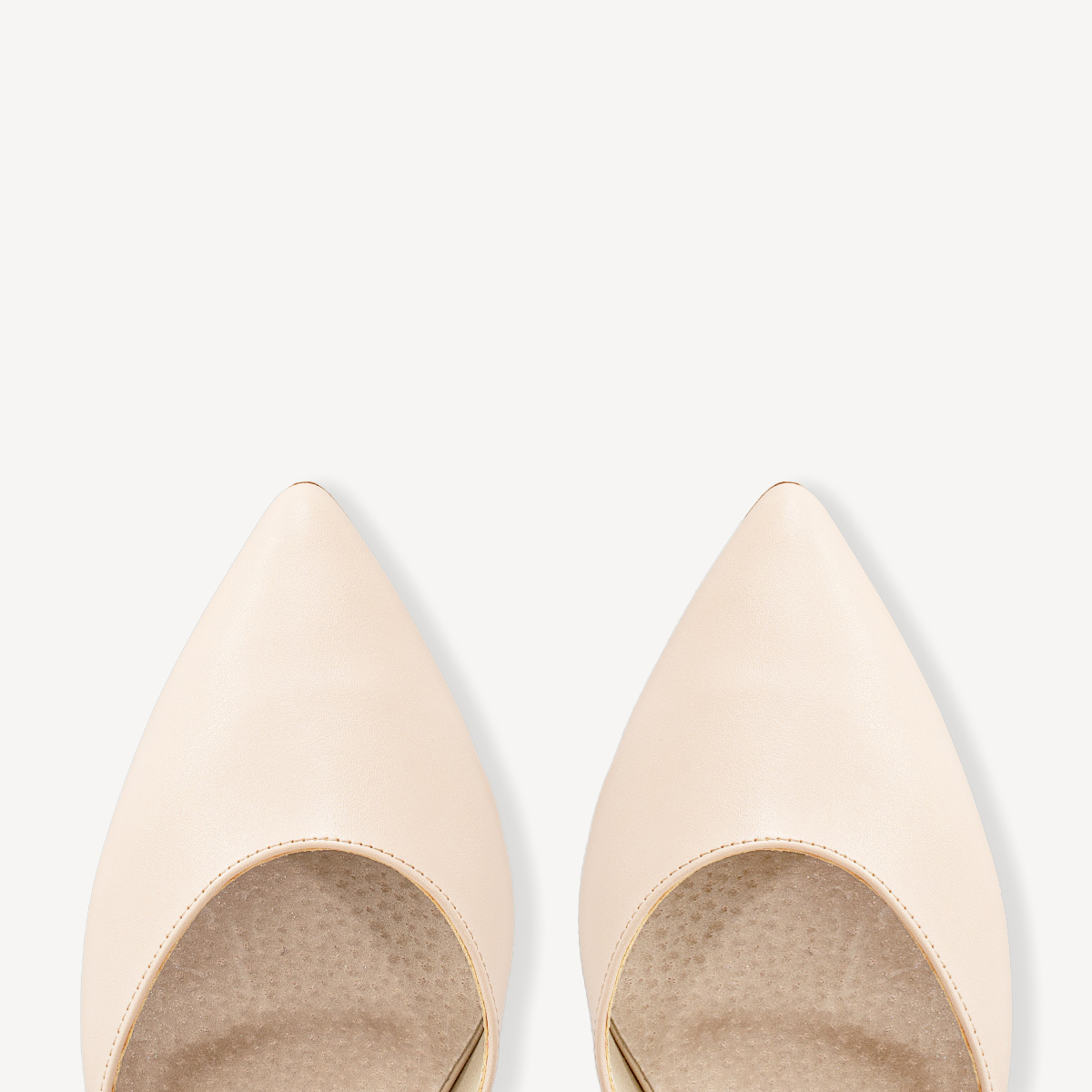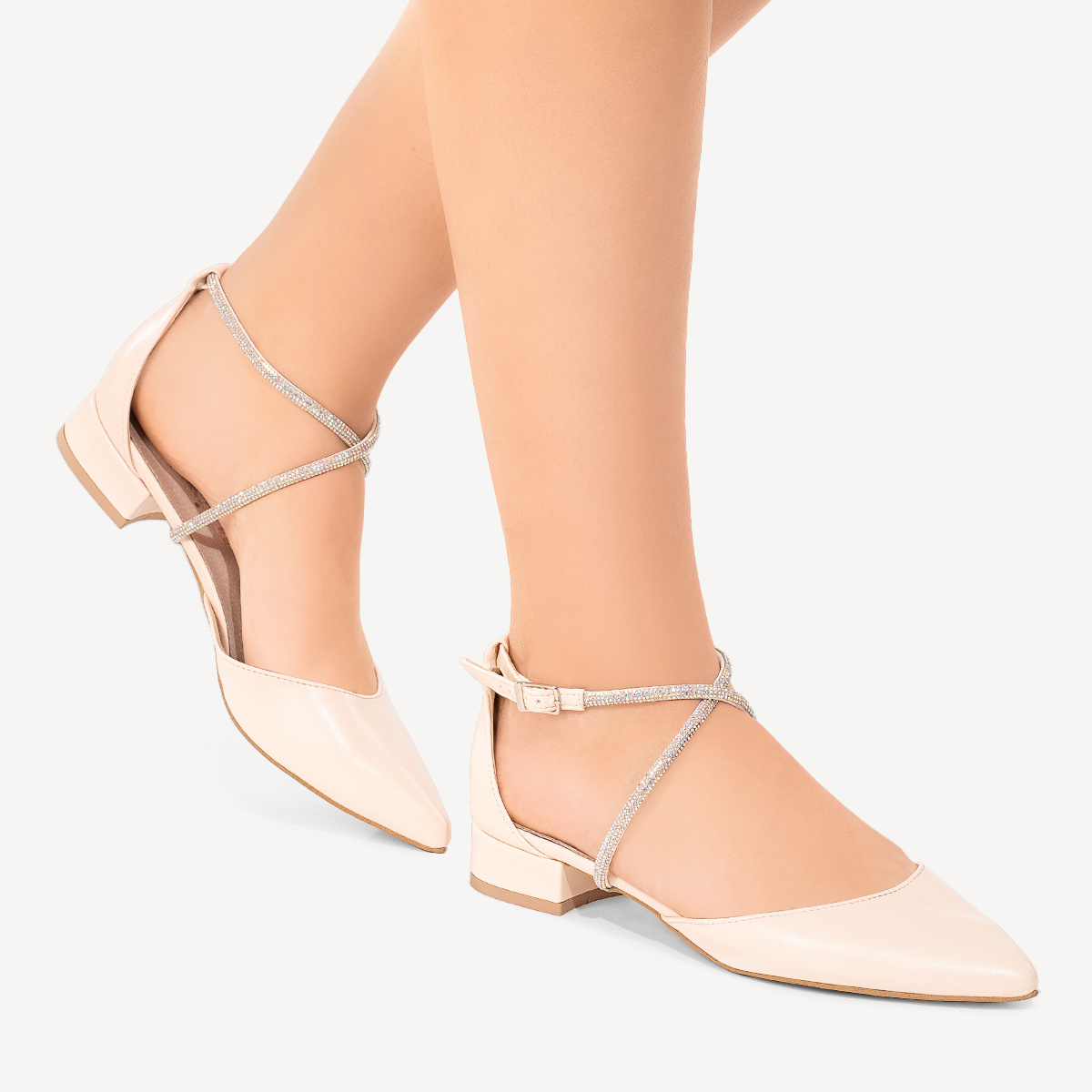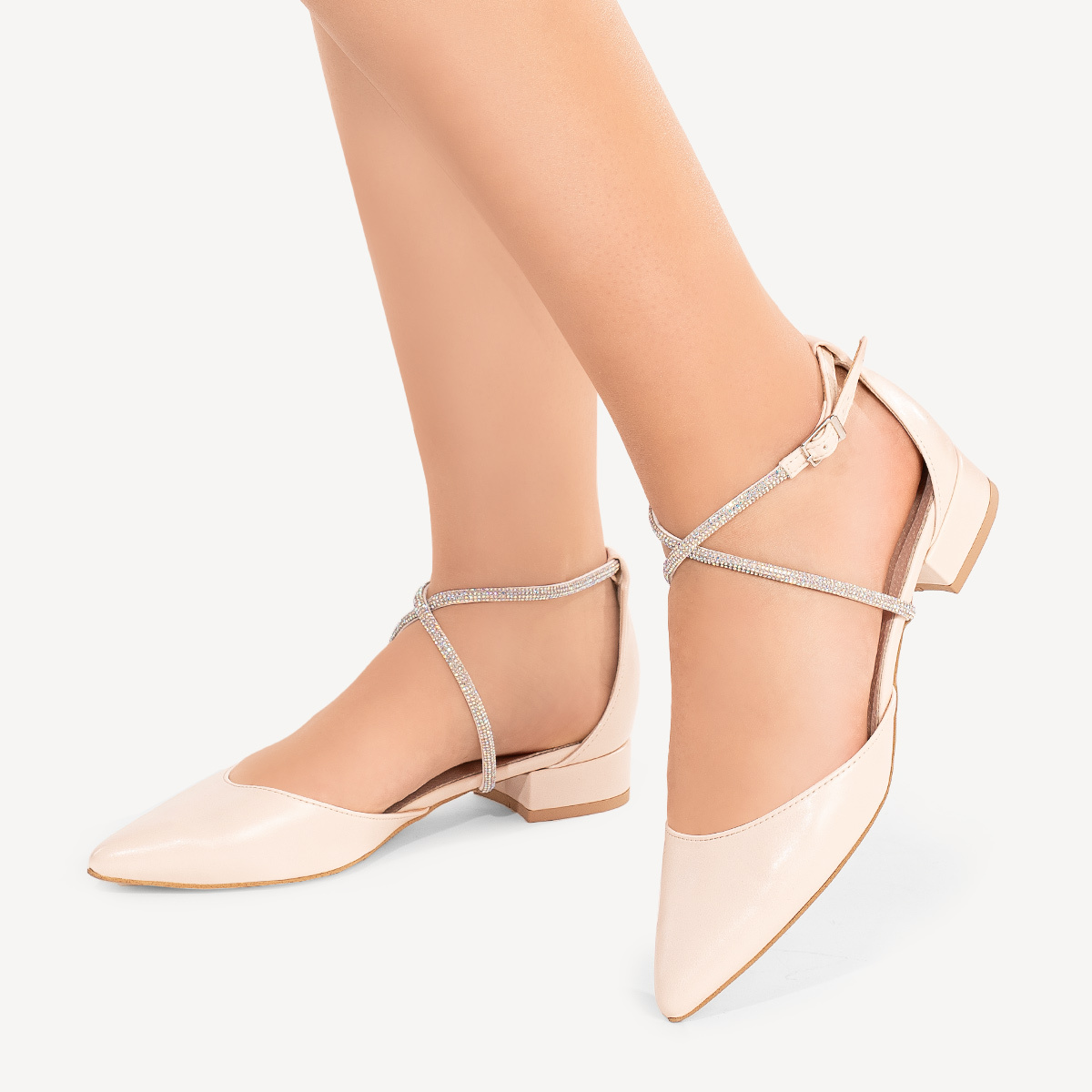 Ślubne balerinki z cyrkoniowymi paseczkami Pricilla w kolorze cielistym ecru, gotowe dodać wizualnej lekkości niejednej stylizacji!