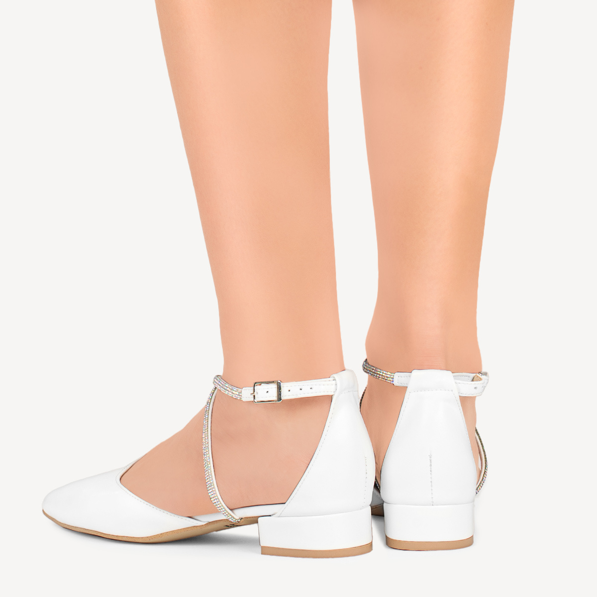 Licowe balerinki z cyrkoniowymi paseczkami Pricilla białe