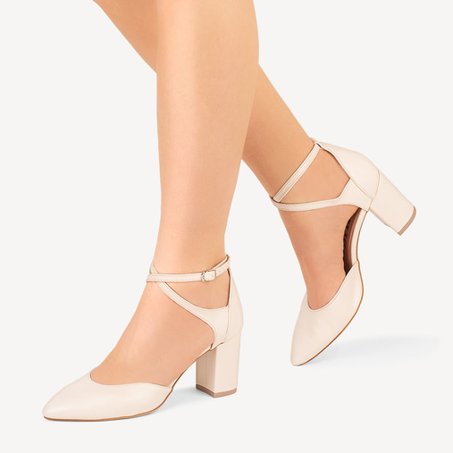 Ślubne czółenka z paseczkami Oriane w kolorze cielistym ecru - i czujesz się kobieco…