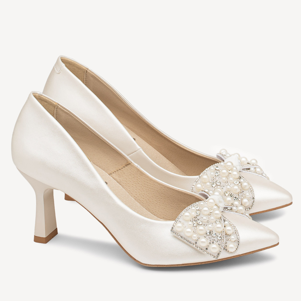 Ślubne perłowe szpilki z ozdobną kokardą Heilly ivory