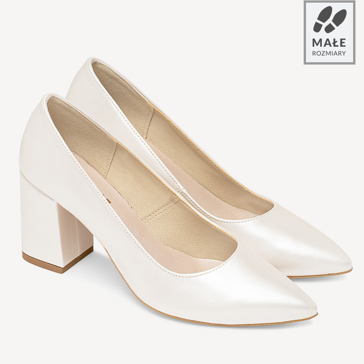 Ślubne perłowe czółenka na słupku Polly w kolorze ivory - byś poczuła się gwiazdą dnia!